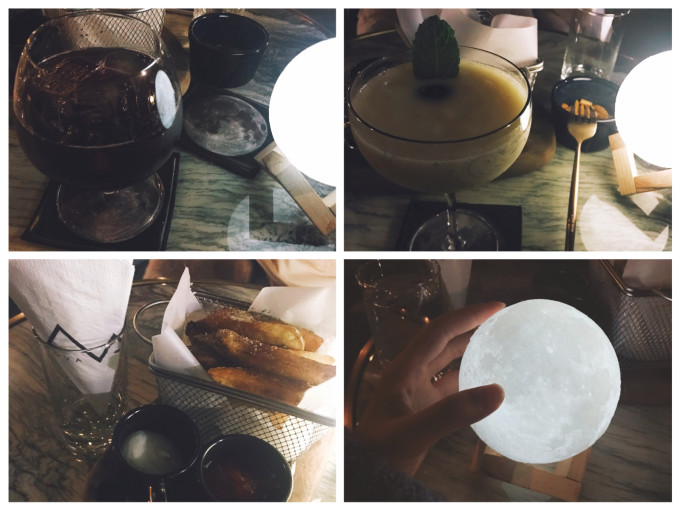 一共两层,一楼适宜不喝酒的朋友们,空间大,音乐嗨;我俩当然选择去二楼啦,对,我们就是冲着这个月球门去哒,推开月球门别有洞天,里面就是隐藏的小酒吧,但空间比较小,也安静一些,服务员小哥哥很热情的招呼我们坐,给我们点单。点完单,当然要在月球门前很做作的拍几张照啦