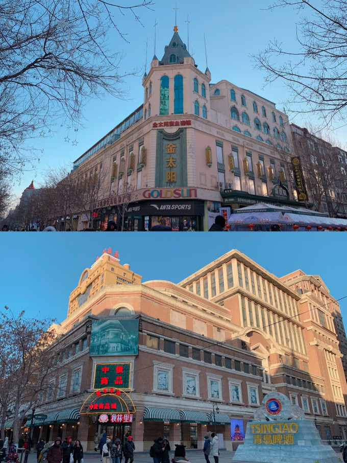 中央大街两边都是像这样的俄式建筑,哈尔滨与俄罗斯相邻很近,哈尔滨的饮食、建筑深受其影响。