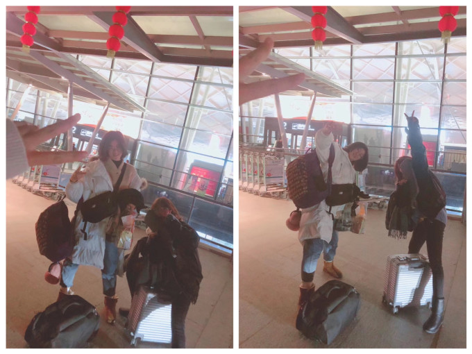 晚上好朋友开车送我们去扬泰机场赶19点40分的飞机,看,我们的大包小包,开始兴奋了呢。