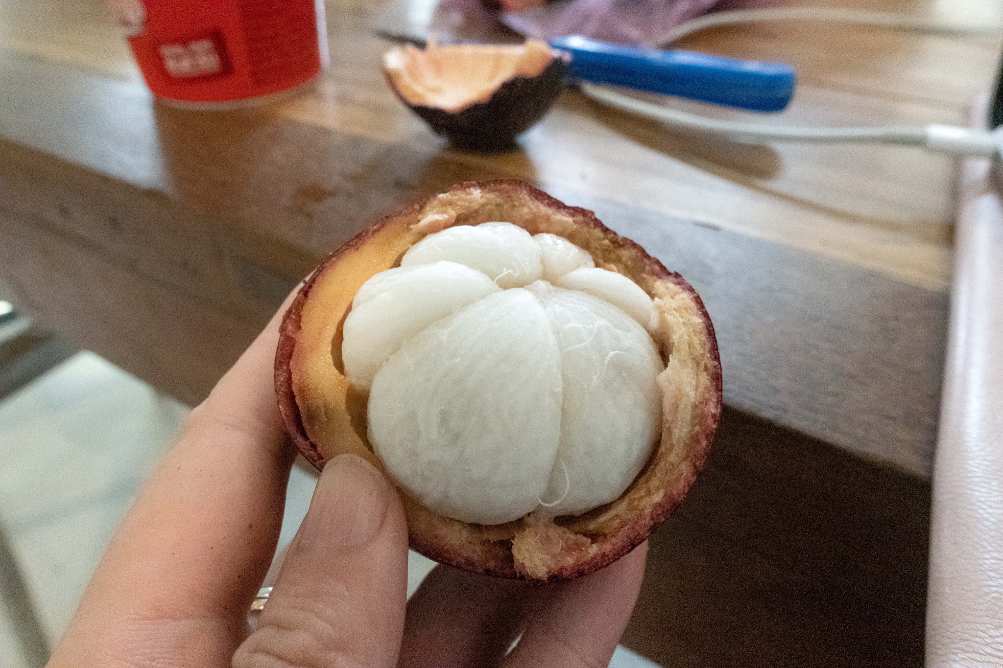 这个卖山竹的大叔,我基本上每天都会来光顾他的生意,几块钱人民币一公斤,不吃饱怎么行呢。 外面基本60-100泰铢一公斤的山竹,他有时候30泰铢,有时候居然是20泰铢,貌似根据山竹的品相。因为我觉得30泰铢已经太便宜了,没想到他还会根据品相降价。有一天晚上他睡着了,我直接自己称了一公斤,然后放了30泰铢在上面..
