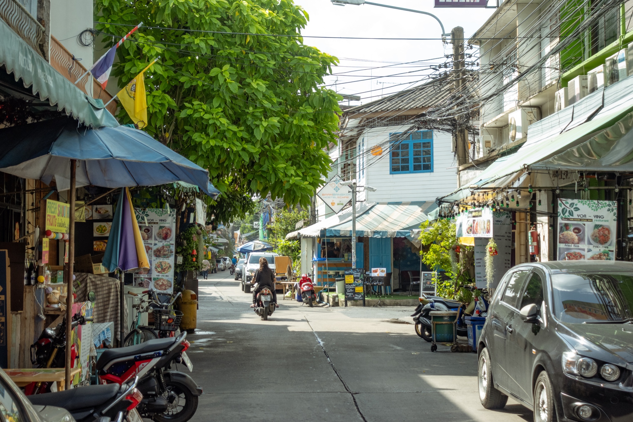 雨季的曼谷,基本每天都在下雨,难得有出太阳的时候,今天阳光明明媚,赶紧拿着相机出来逛逛街 。感觉考上路的小巷子逛起来还挺有感觉,很多房子都掩映在绿丛中的样子。
