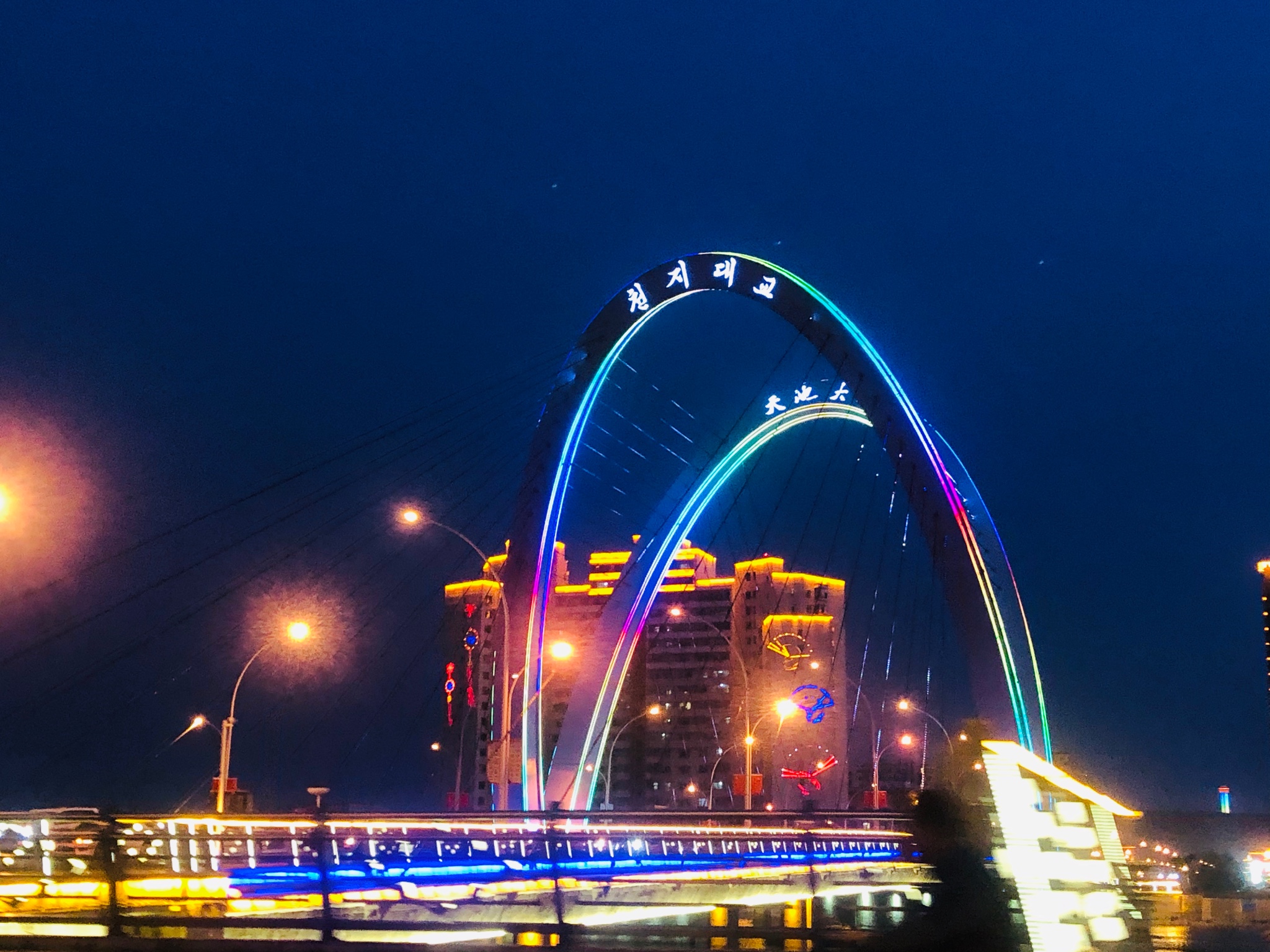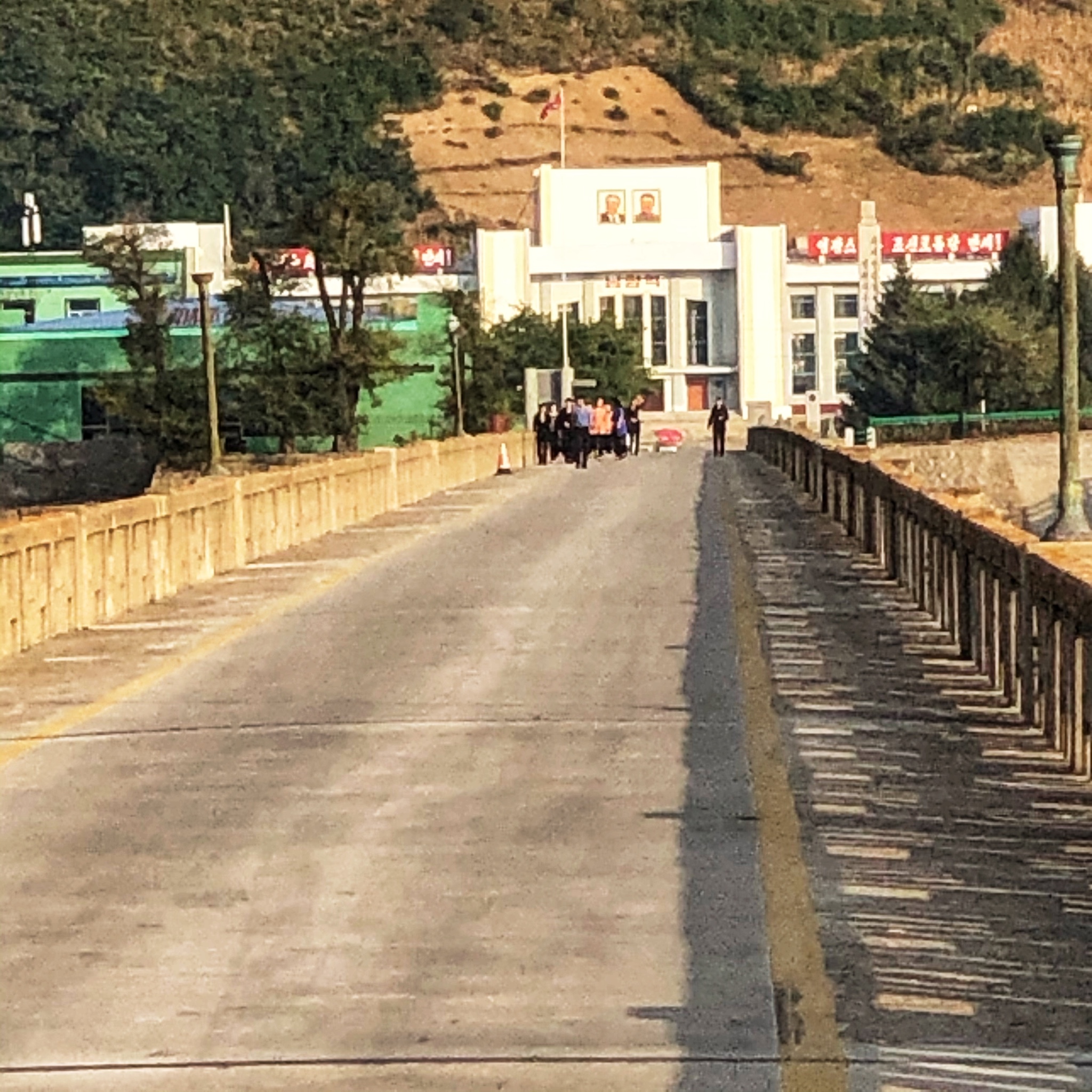 我们开车到了图们口岸,一开始来的是公路口岸,门票25元,可以上到最上面用望眼镜看向对面的朝鲜,是楼梯走上去的,比较抖,每个楼梯只能容下一个人,中途还有卖朝鲜特色产品的,我们买了点儿烟,居然在这边还可以买到朝鲜烟,上到上面望向朝鲜,不知道对面的朝鲜人民是不是也在看我们,下面的大桥连接着中国和朝鲜,两个国家各一半,所以只能走到桥的中间,能看到对面很多朝鲜妹子向我们走来,好像是来我们这边打工的,为表示尊重不可以看她们,也不能拍照。