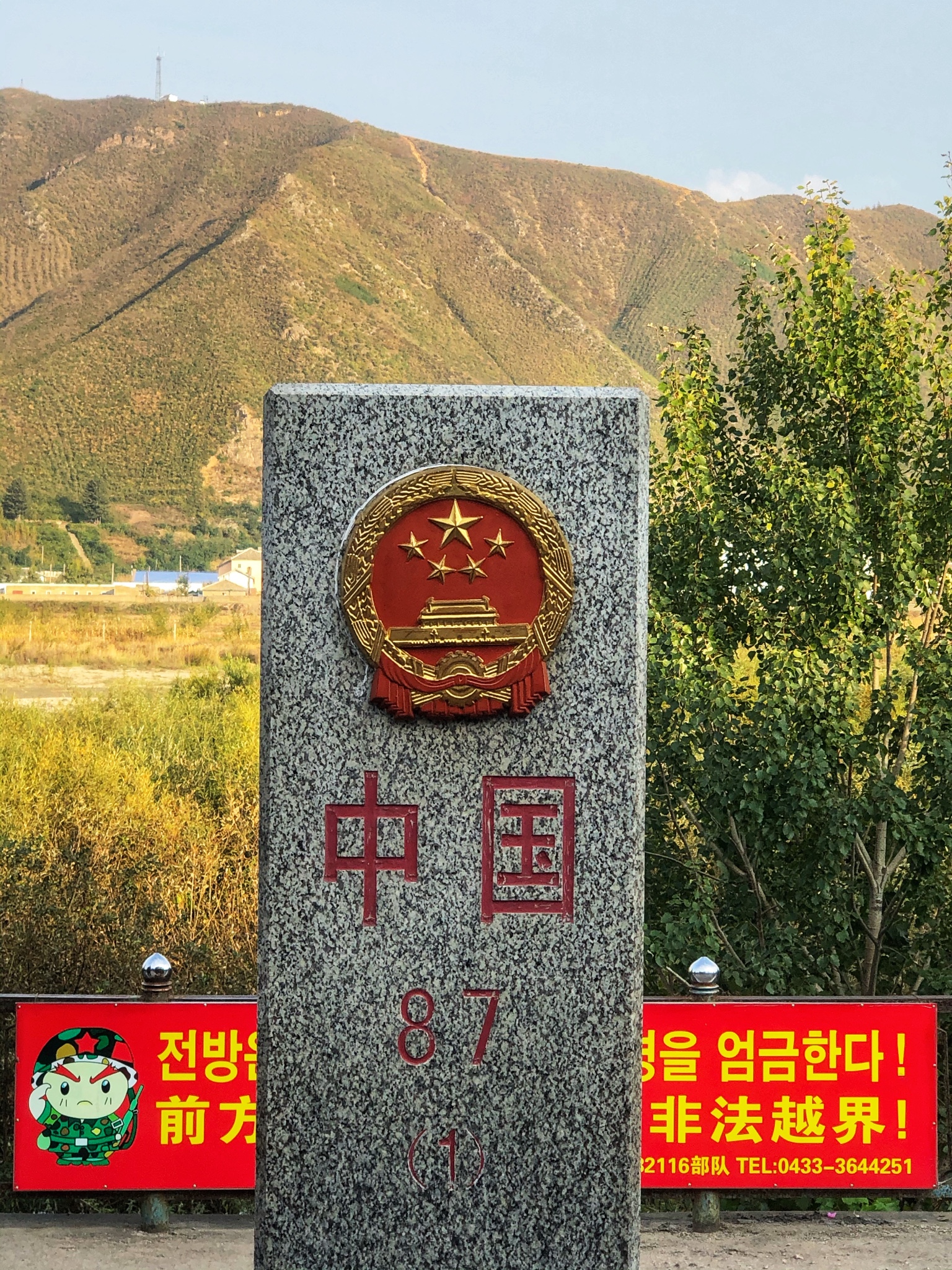 虽然到了口岸看到了朝鲜,但是跟我们之前做攻略看的图片不太一样,再去图们雕塑公园的路上在发现,原来一开始去的是图们公路口岸,我们想来打卡的是铁路口岸,铁路口岸上面写着中国,在70年周年国庆这个时期,感觉格外的激动!这边在路边可以把车靠边停在这里拍拍照片,感觉意义很大,挥起来我们的小国旗。