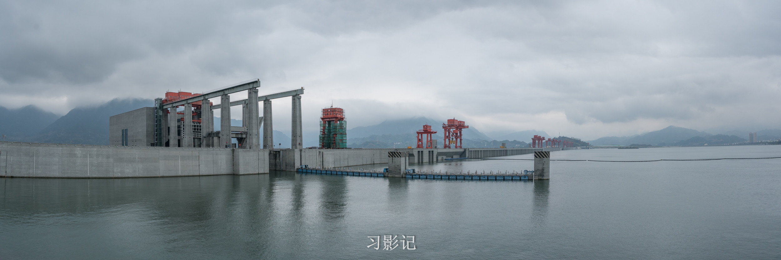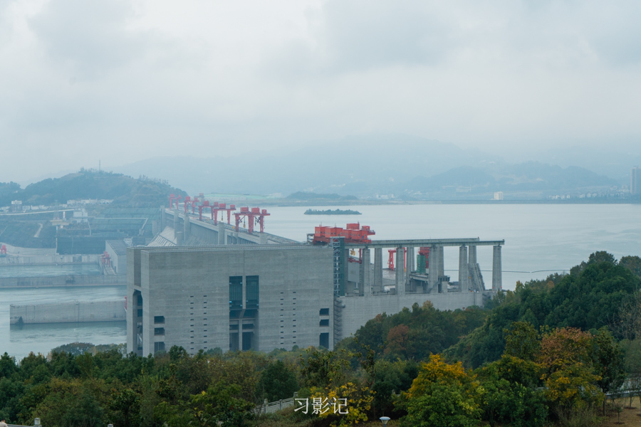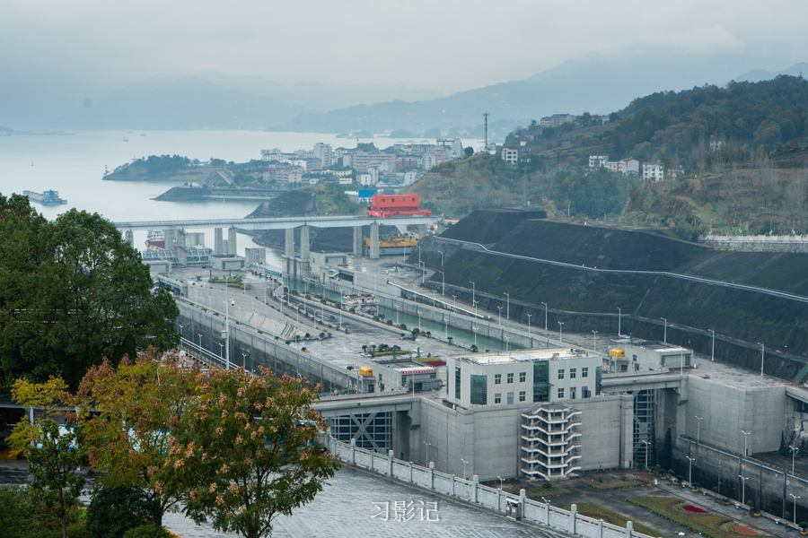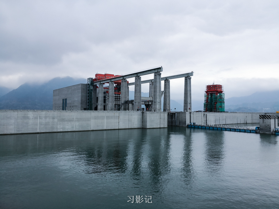 下图正对着我们那栋房子一样的建筑就是升船机的位置,也就是“小船坐电梯”的地方。以前没有升船机的时候,所有船只过三峡大坝都需要通过五级船闸,通行很缓慢,据说至少要四小时,而有了升船机,吨位比较小的船可以几十分钟通过三峡大坝。游轮提供自费体验坐升船机的服务,每人290元。