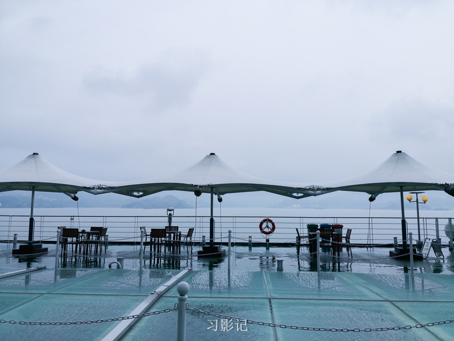 游轮一共有六层,二楼有购物街,五楼有小小的游泳池,六楼甲板可以观景,还有电影院、酒吧、健身房等区域。