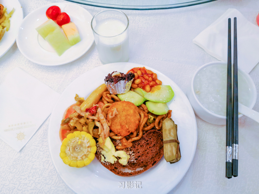 船上一日三餐都自助,菜品丰富合口。