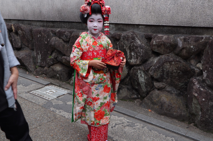 在祗园遇见的小艺伎,很多人都抢着跟她合照