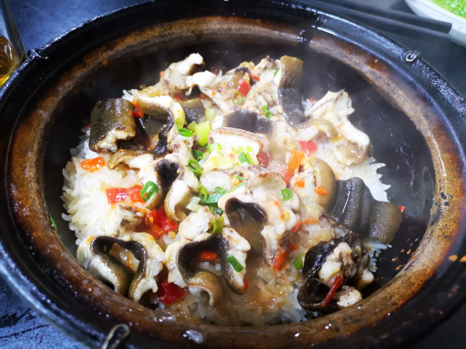 辣味鳝鱼煲仔饭:这品种的鳝鱼还真没吃过,肉质好结实,饭粒清香,没吃完太多了!