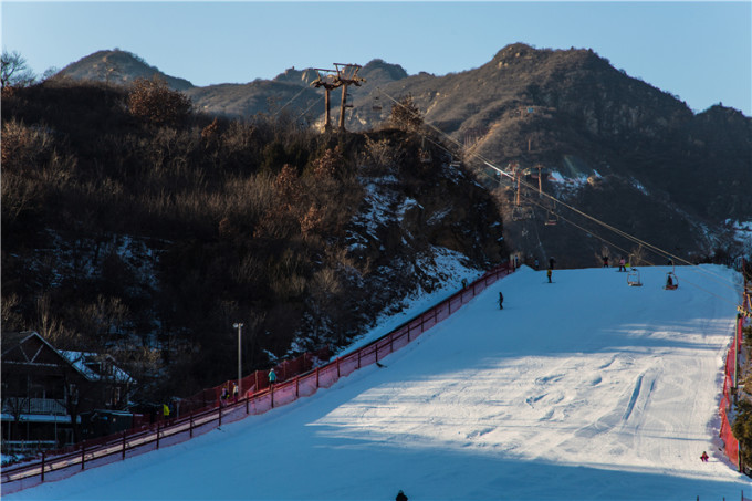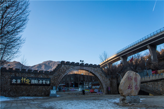 北京怀北国际滑雪场座落于素有北京“后花园”之称的怀柔区九谷口自然风景区内,距北京市区67公里,位于怀柔城区北18公里,雁栖湖北行5公里。三面长城环绕,雪场内远山眺望明代长城依山而行与“慕田峪长城”绵延相接,周围4.5公里的明代长城,其中万里长城唯一的“夹扁楼”景观堪称长城建筑史上的奇迹,巍巍燕山独特的峰林地貌,孕育出奇松怪石,地势险峻。是集人文景观和自然景观于一体的滑雪场,素有长城怀抱中滑雪的美誉。