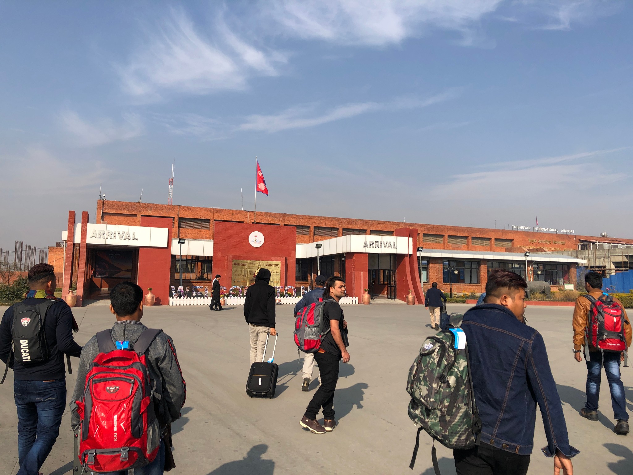 电视的事刚消化完,一下飞机继续震惊。加德满都作为尼泊尔首都、最大的城市,这里唯一的一个国际机场,简陋程度可以说还不如任何一个中国四五线城市的火车站差不多。引用后来听朋友讲的一个笑话:说一个美国朋友来尼泊尔,下飞机之后一直在找,where is the terminal?因为这里的航站楼,真的不像航站楼,外墙是没有上油漆的红砖,很像废弃厂棚。