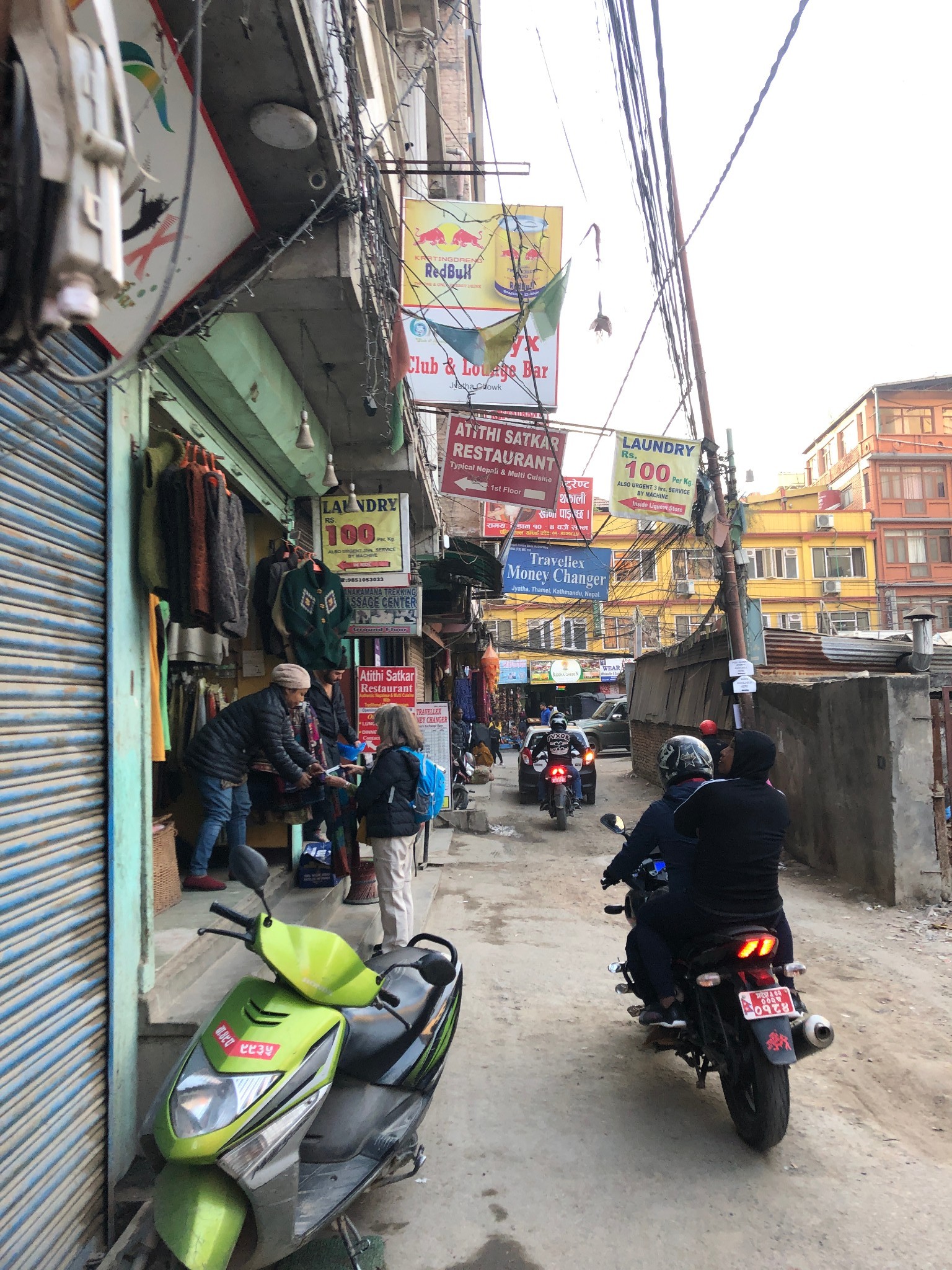 我们入住的酒店在加德满都最洋气的“境外人一条街”——泰米尔街,境外来尼泊尔登山的背包客多半选择住在这条街上,算是游客最集中的区域。