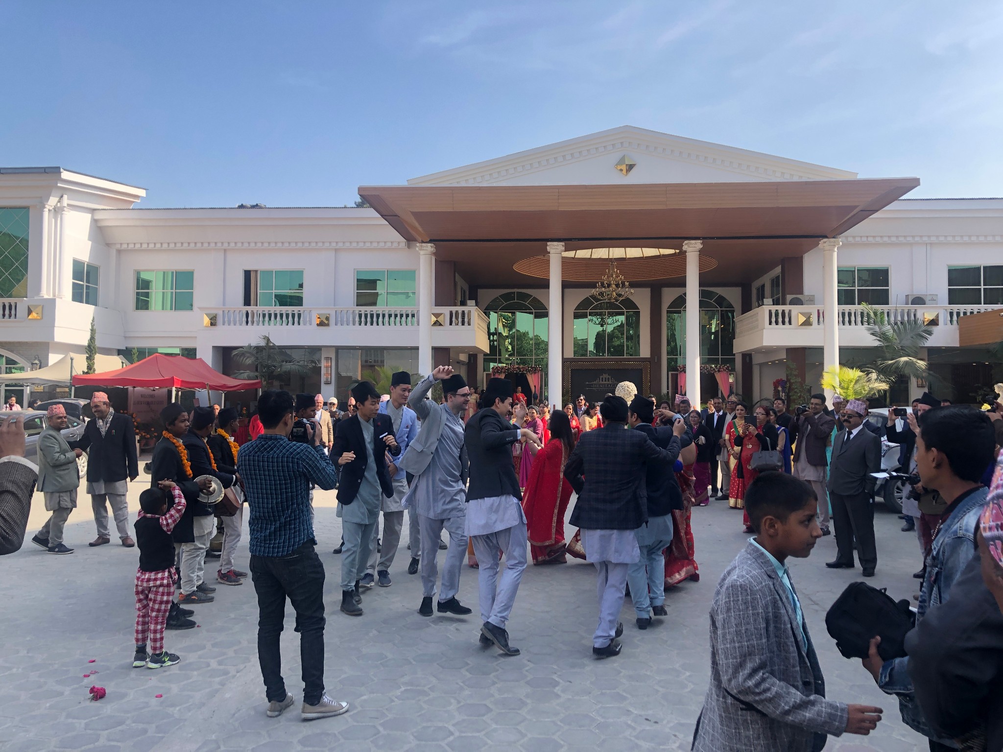 因为新郎新娘之前近十年的生活全都在美国,这次来参加婚礼的十来个关系比较密切的朋友们也全都是从美国飞来。由于新人太过忙碌,负责组织安排我们行程的是新郎的三个发小,也都是尼泊尔本地人,但现在分别生活在英国、瑞士和法国。