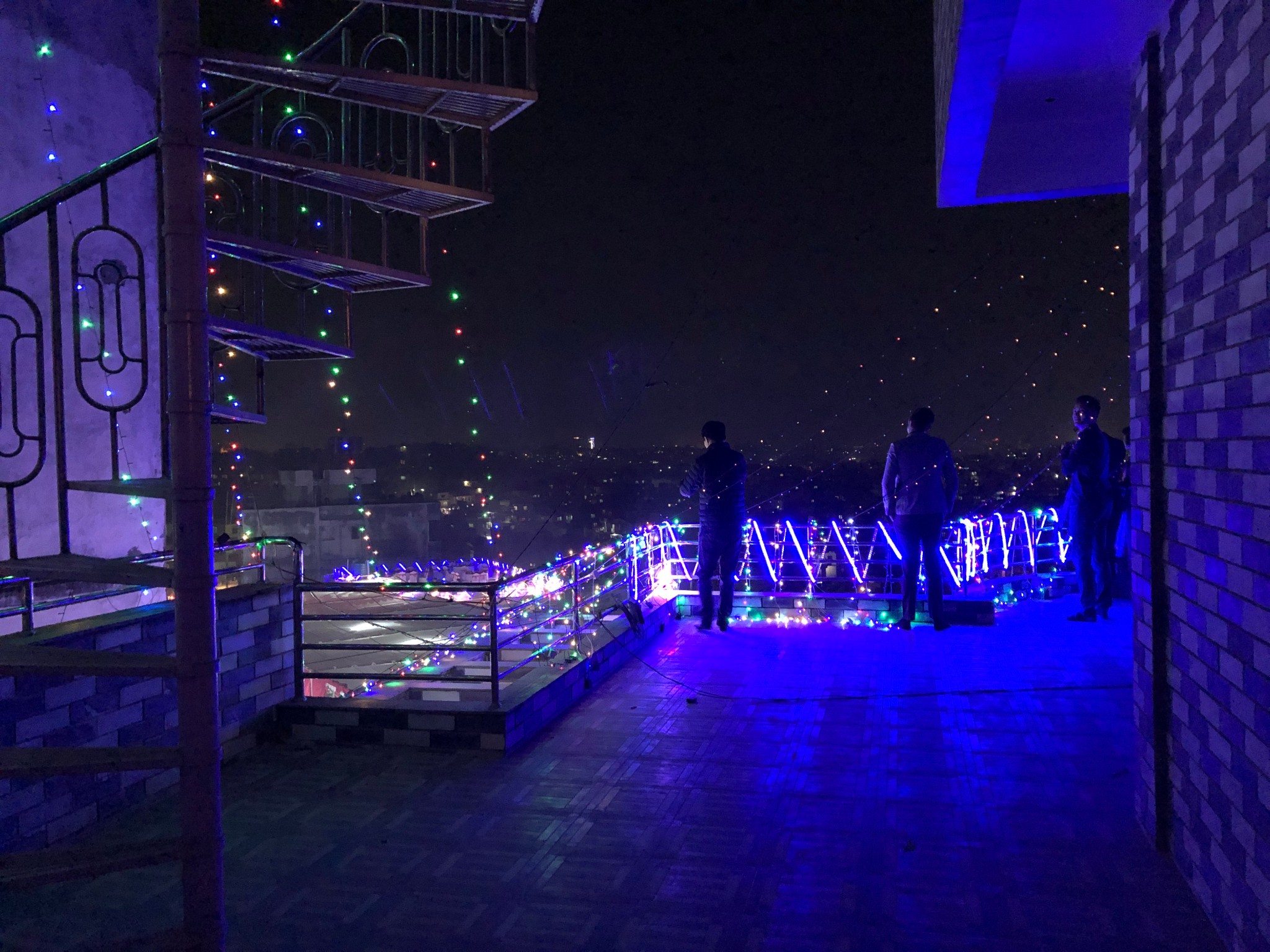 我们在阳台上眺望了远处夜景、感叹完何时自己也能拥有这样的半山庄园,我去上了个厕所,发现马桶竟然冲不了水。无奈拿起旁边的小水桶准备接水冲马桶(在印度学会了他们的传统冲厕所方式),却发现厕所里的任何一个水龙头都没有自来水。尴尬至极,只能开门向朋友求助,朋友又跑去向主人求助,被告知因为自来水是从山顶引下来,所以水压时常会有问题。等了大概五分钟,水龙头终于出来了一点水,我赶紧用小水桶冲了冲马桶,逃也似的离开了这所谓的豪宅。