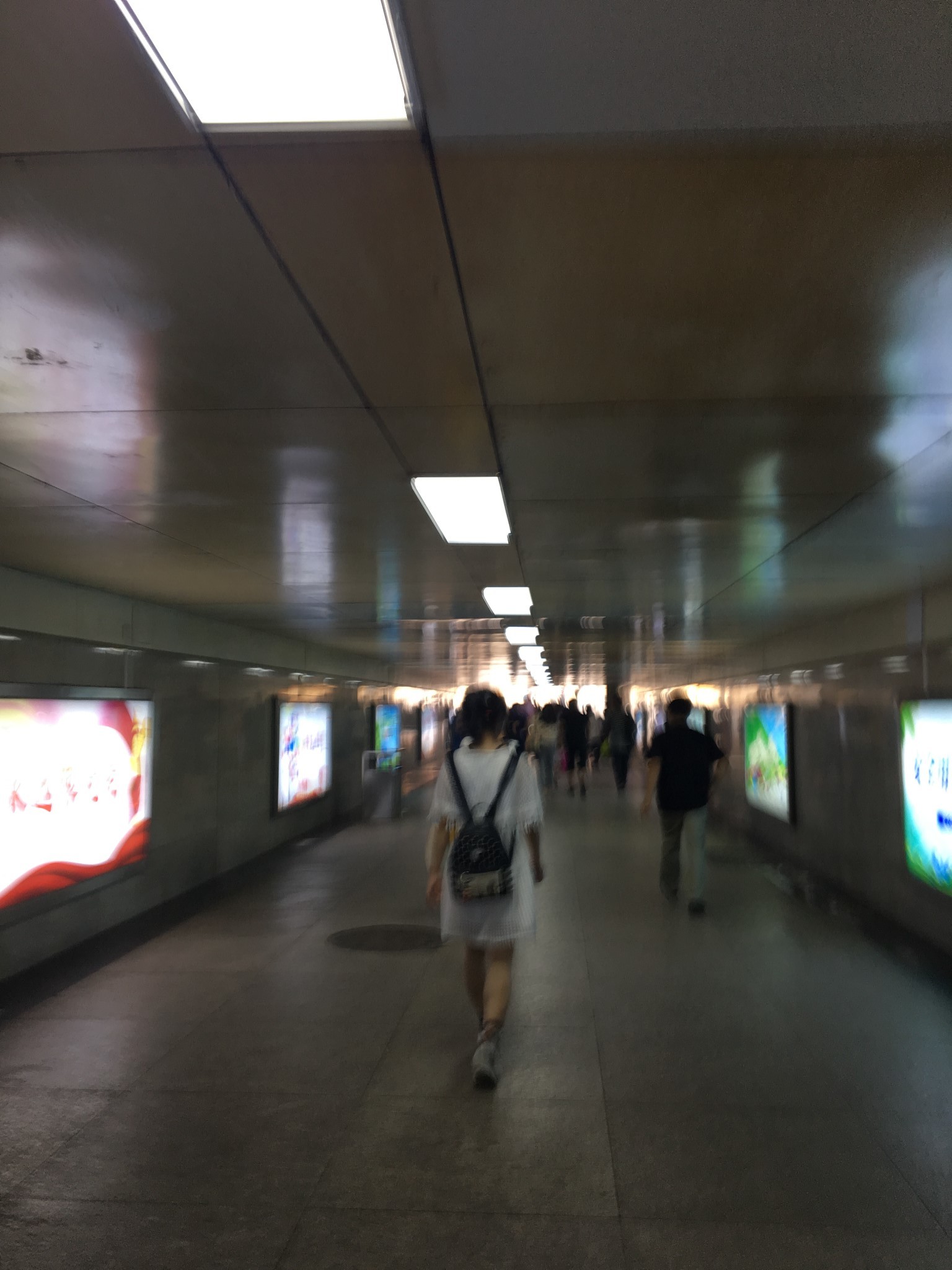 这就是地下通道,人来人往,还好小编自己只是一个背包,这点路程还是可以的~