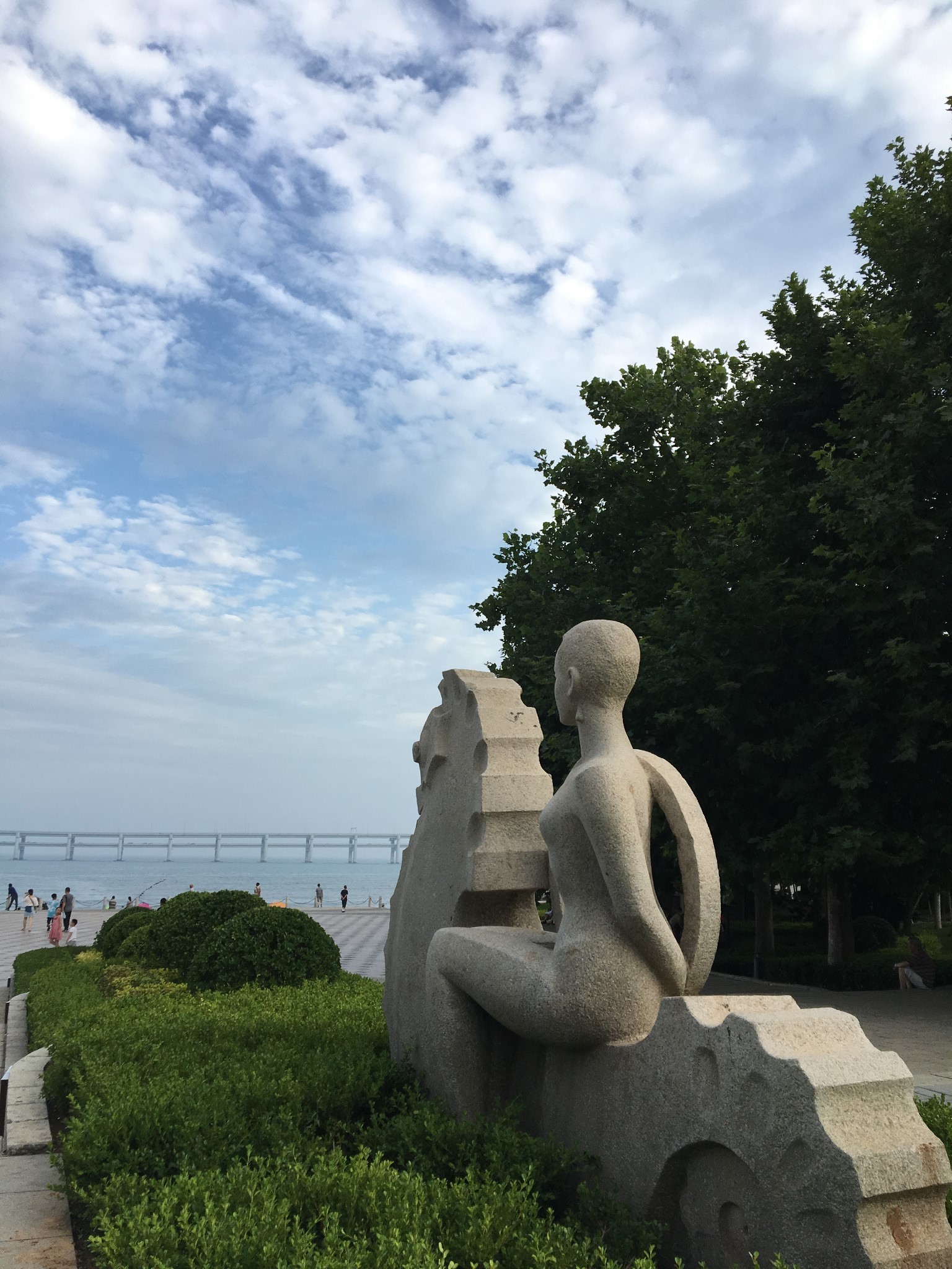 穿过马路。看到一座雕塑一位少女在眺望远方,这里就是星海公园了~