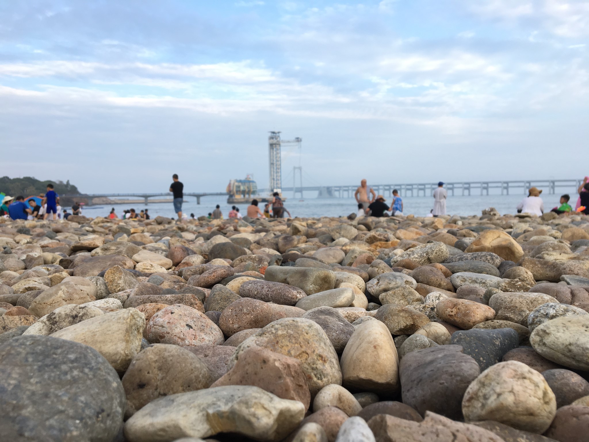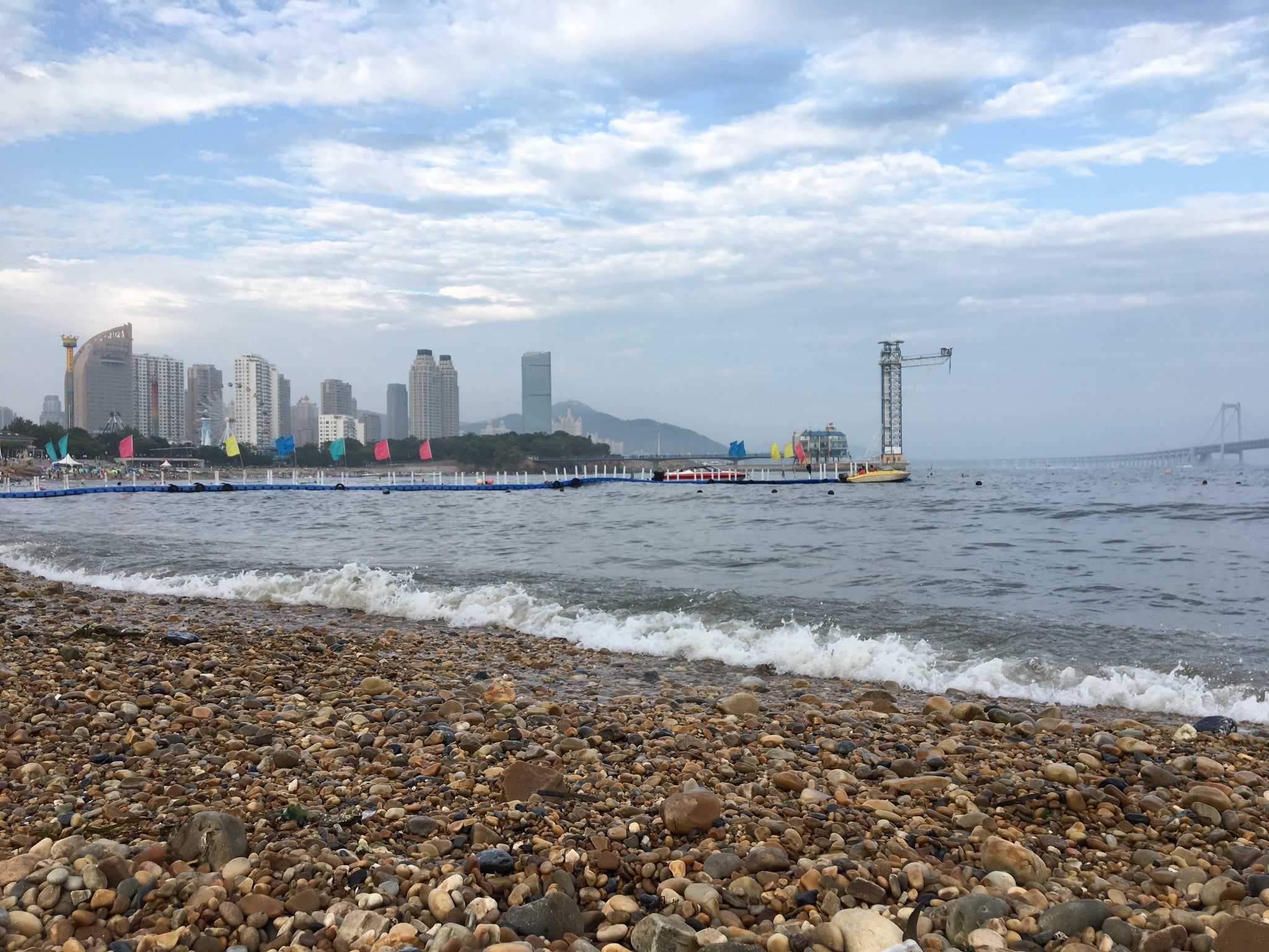 这里的海岸是不是沙子,是鹅卵石构成的,所以不适合光脚下去建议穿一双拖鞋,不至于太硌脚,但是最佳游泳地点不是这里,而是后面小编介绍的地方——棒棰岛,后面小编也会有详细的介绍~