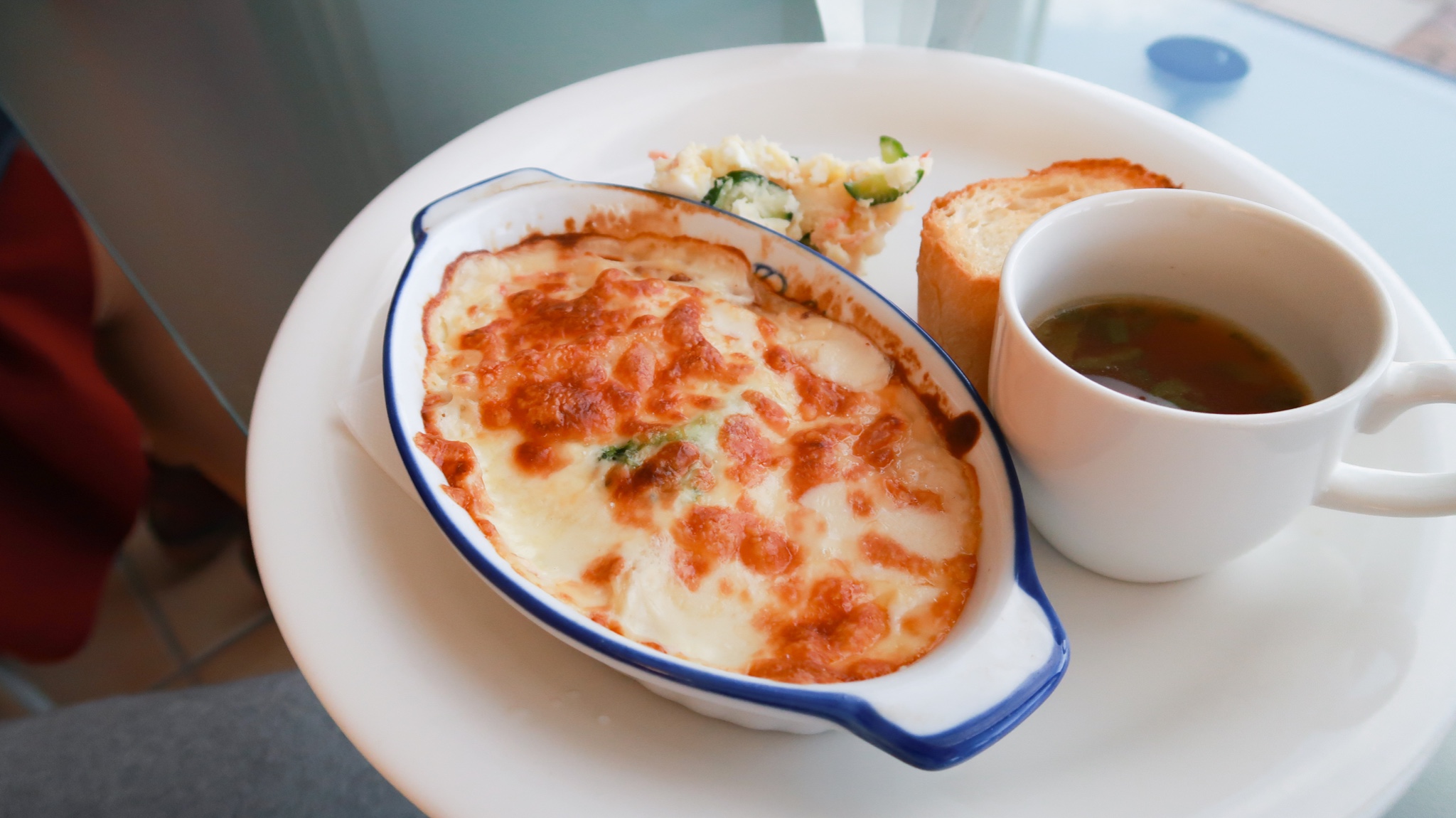 Cafe' LAMINAIRE是函馆当地小众又独具特色的一家咖啡吧,融和简餐和饭后甜点,我和柯柯可以在这里品尝当地风味饱餐一顿,然后顺便喝点东西歇歇脚,最重要的是我们坐在一个视线通透的好位置,面前一大面干净的落地窗,沿岸是津軽海峡,只要稍微抬起头,这里简直就是最好的观景位置。