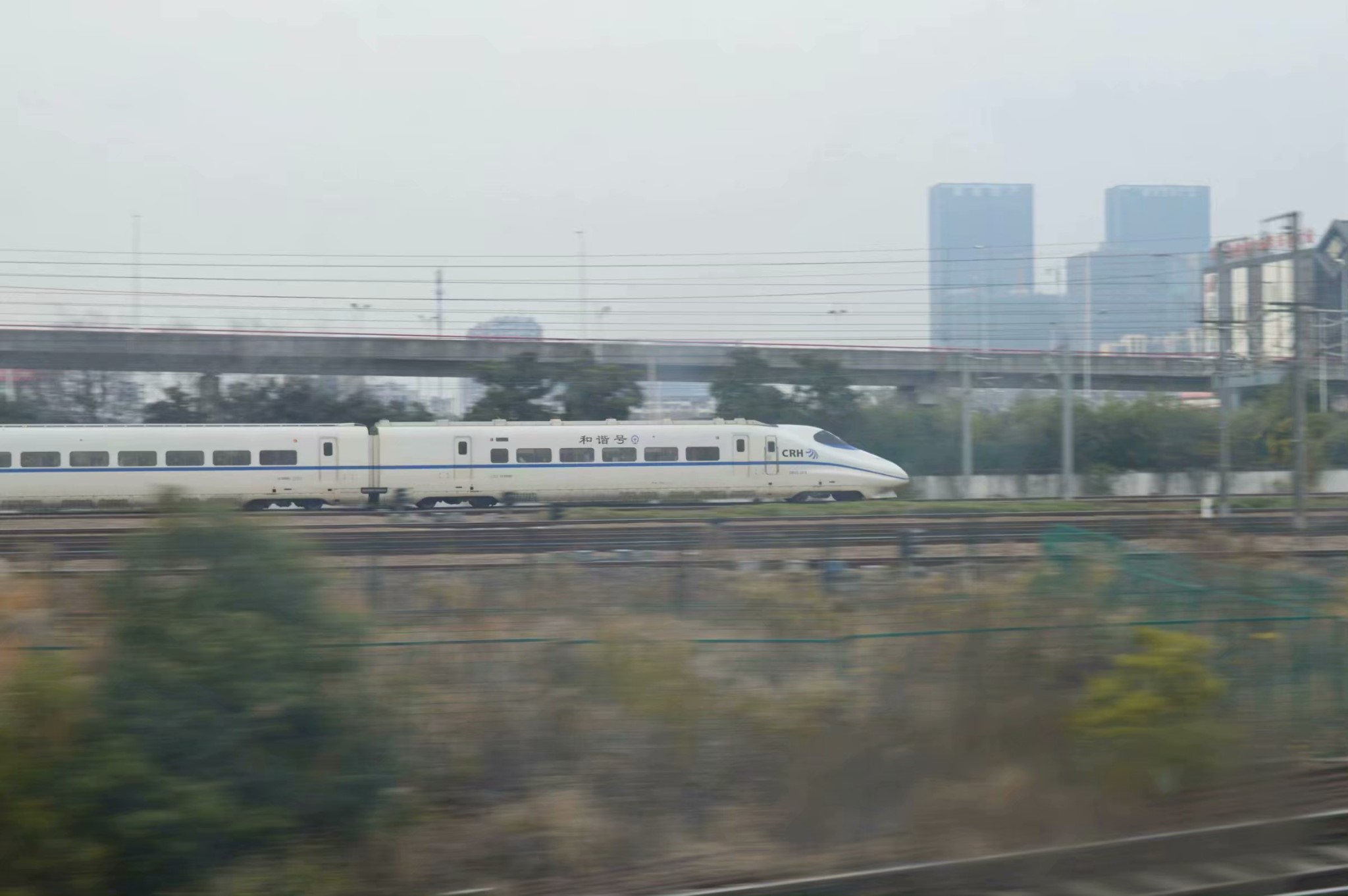 T203到达苏州站时捕捉到一同进站的CRH2型动车组列车!