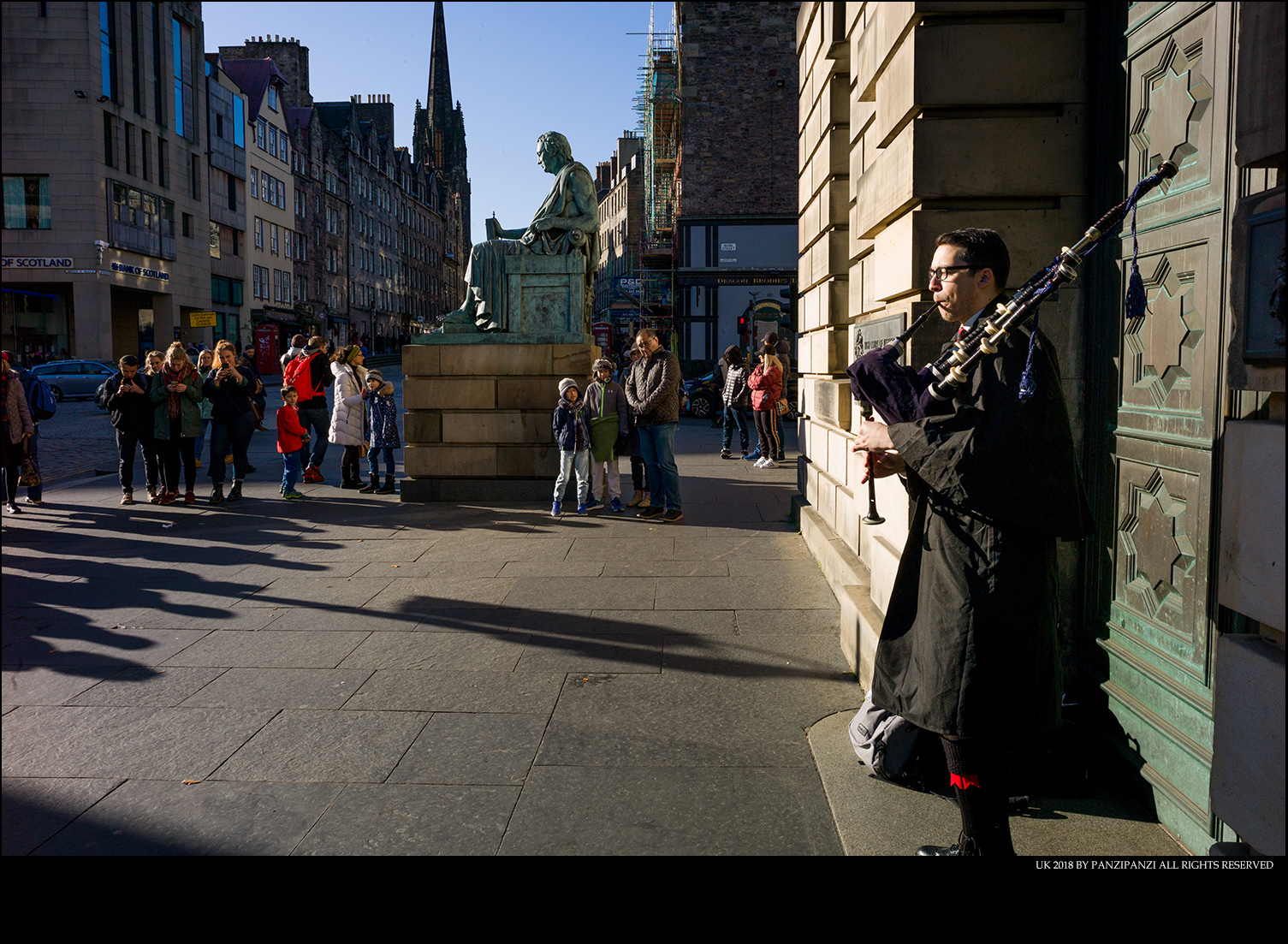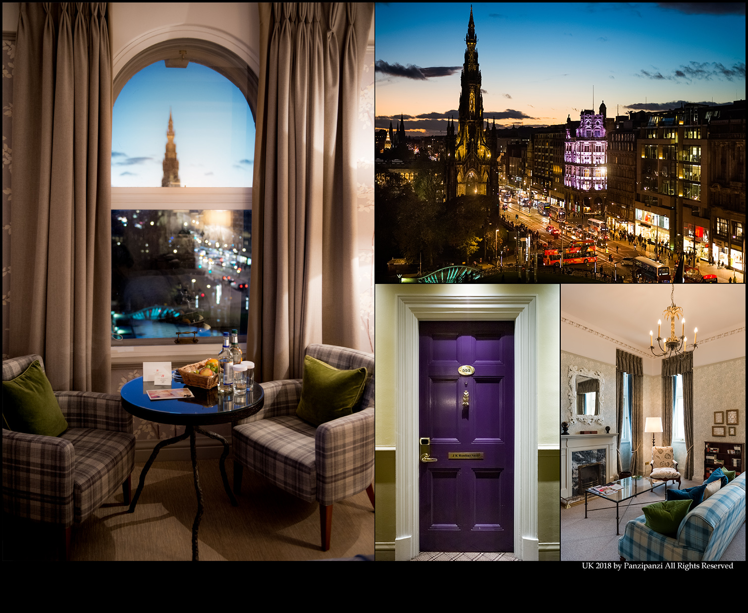 我拖着行李箱路过那扇紫色的房门,径直走到我的房间,居然相隔不远同在五楼。窗外的城市天际线上还残留着最后一点深蓝,之后城市就将没入灯火与黑暗中。眼前高耸的司各特纪念塔黑黢黢地矗立在街头,仿佛一个黑甲武士在守望人世。影影绰绰的行人在街头晃动,越过泛着微光的人行道,进出于双层巴士和店铺之间。我有些犹豫,是否要下楼去加入他们,也许找个隐藏在街角的酒吧喝一杯,能消除生物钟的紊乱,使我免于时差的纠缠。