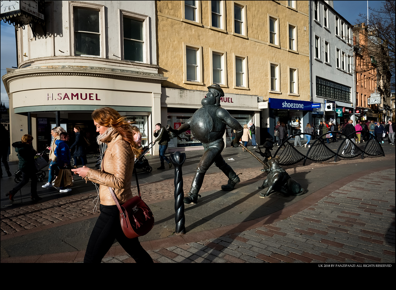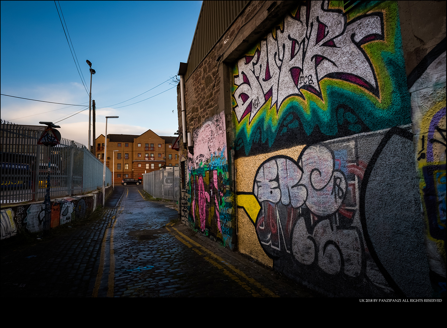 午餐以后我和罗素一道去“逛街”。这倒不是那种购物式的逛街,而是这位一头卷发带着圆眼镜穿牛仔裤的生物学博士极力推崇的充满“发现”意味的走街串巷。罗素对艺术的极大热情促使他和他的伙伴发自内心地想要给这座城市的造访者设计一个关于“门的涂鸦”的发现之旅。街头涂鸦在英国乃至欧洲甚至全世界的城市都不算什么新鲜事物,但是邓迪的“门的涂鸦”确实有些不一样的意义。起初只是几个街头艺术创作者的即兴之作,后来他们意识到可以将其做得更有意思一些,因此罗素开始有意识地询问一些业主是否愿意将他们店铺的后门贡献给艺术家们随意发挥。有趣的是这些作画者来自世界各地,有些还颇有名气,他们带着各自的背景故事与当下情绪留下风格迥异的涂鸦之作。可能是某个刚刚与女朋友分手的独自旅行者的心情投影,也可能是某个鸟类爱好者执著的偏好发泄。我甚至看见一个由数不清的大大小小的鹿头搭建起来的线条迷宫,作者大概是个爱斯基摩人。这些独具创造性的绘画作品在寻常巷道里默默无闻地沉寂着,边上也许就靠着酒吧后厨的大垃圾箱。并没有人特别珍惜它们的存在,但是当你发现它们的时候,它们就成为平常生活中一簇一闪而过的灵感火花。这意外地成为我在邓迪之行中比V&A博物馆更大的收获。