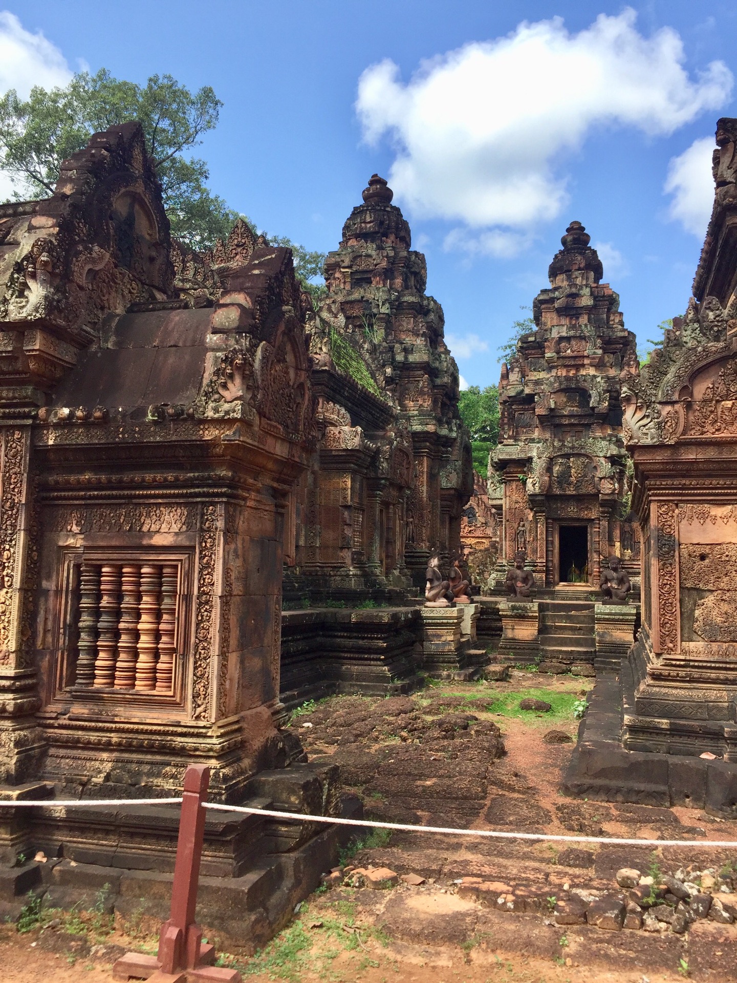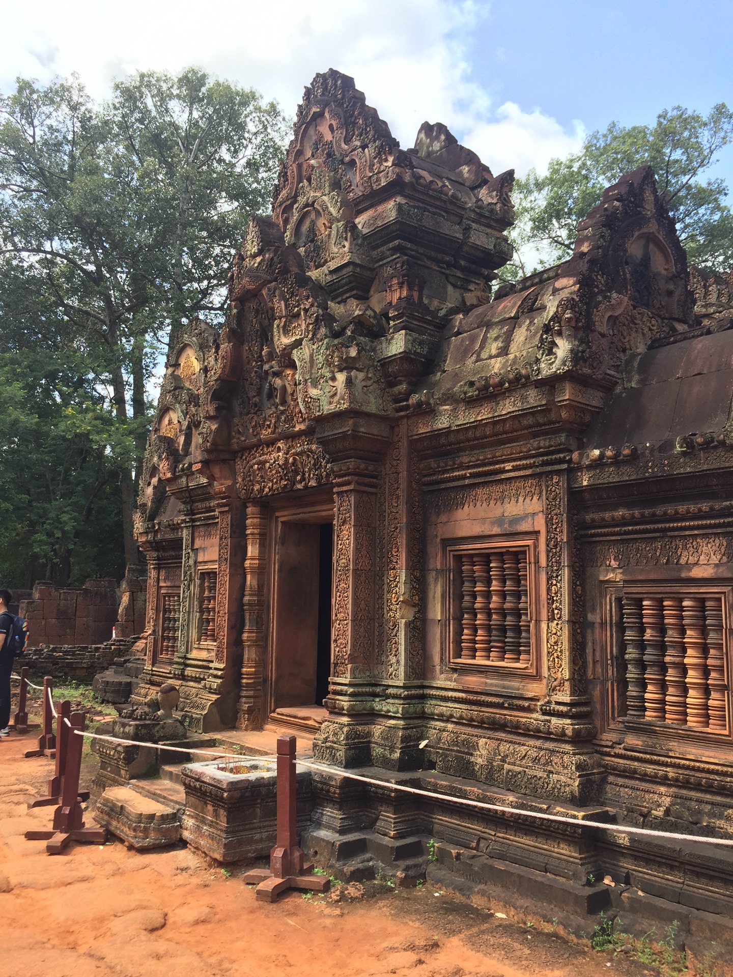 女王宫,是所有吴哥建筑中少有的红砂砾石筑造的宫殿,而且,在所有的吴哥古迹中雕刻最为精细。