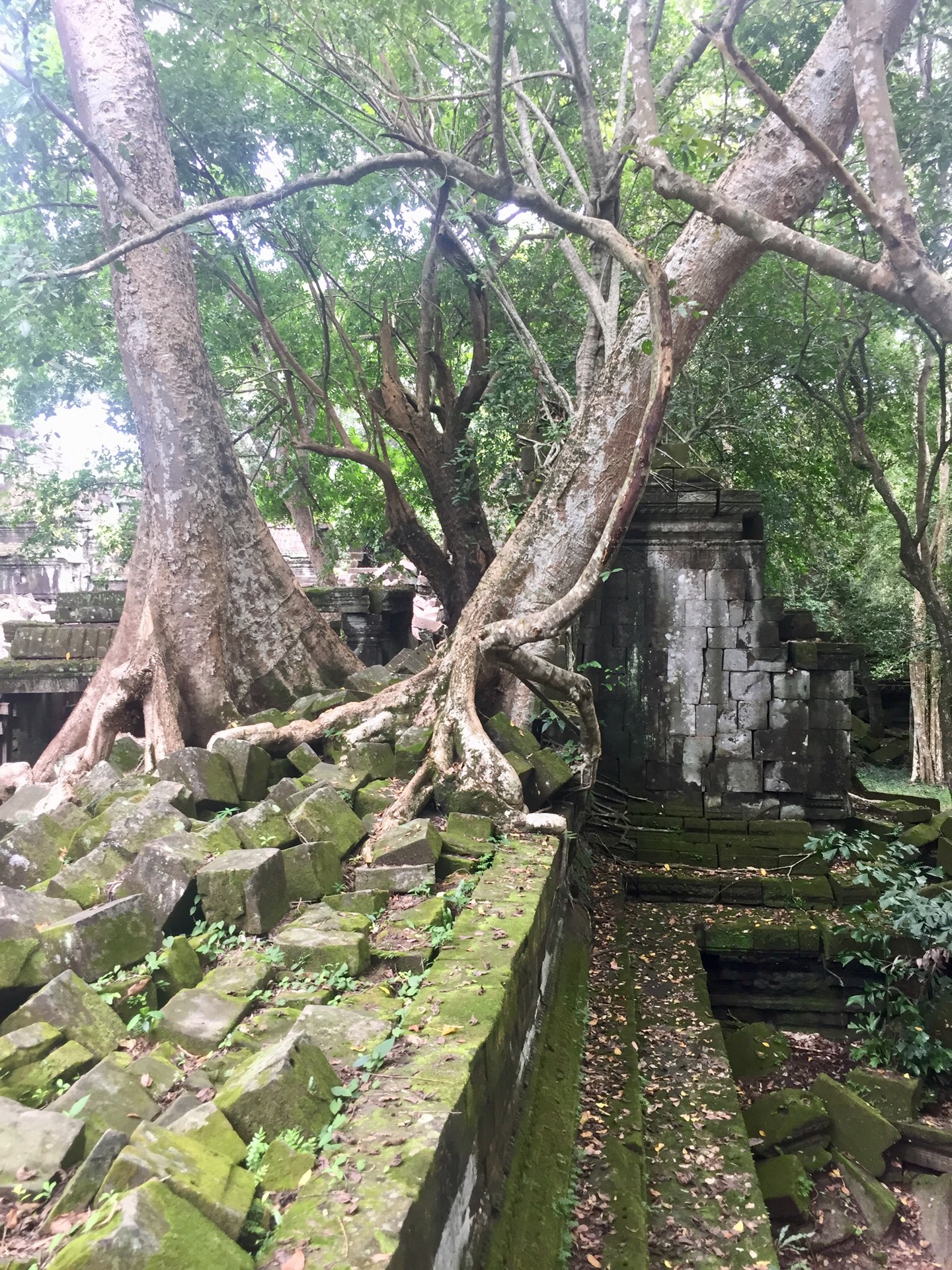 大量的庙寺、围墙被树木所推翻而成为废墟。这是大自然的力量,是历史进程中的必然。