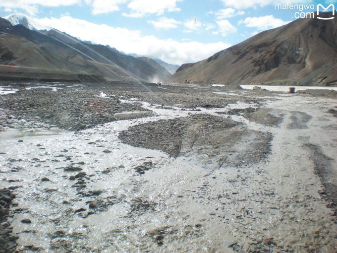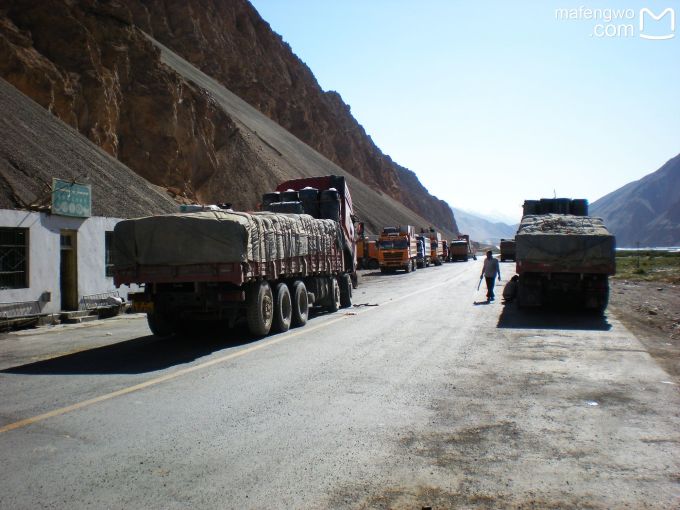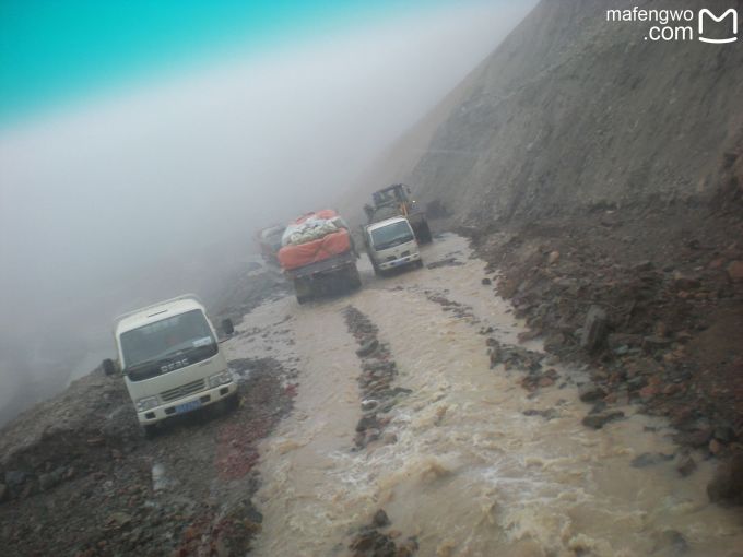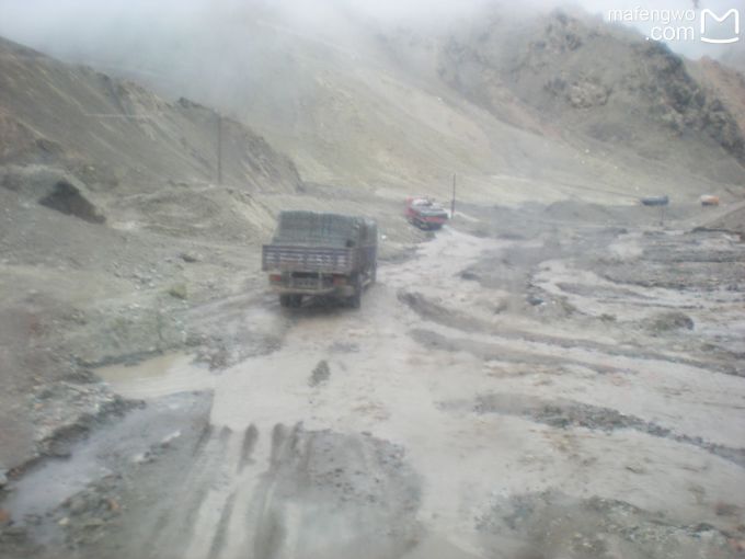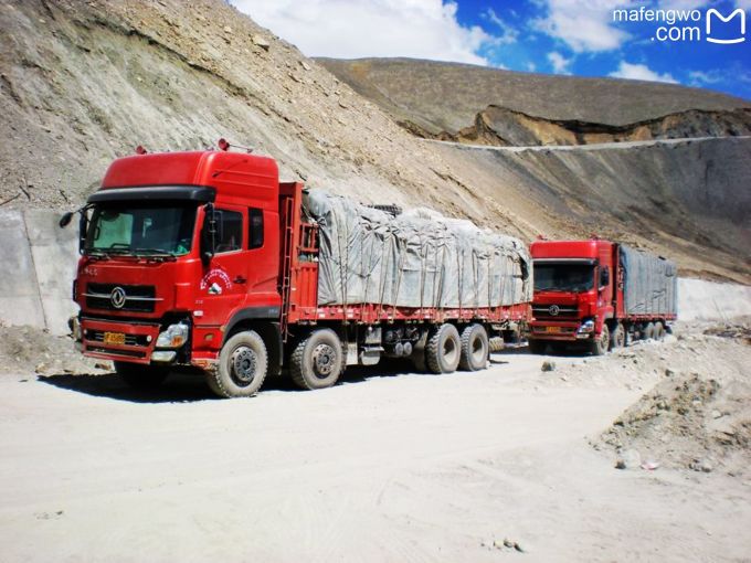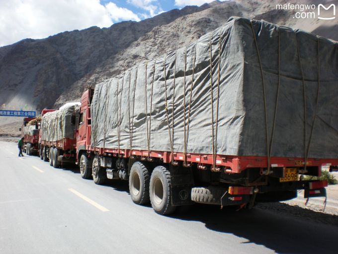 新藏线在全线修路,因此运输物料的货车很多,路也压的非常烂