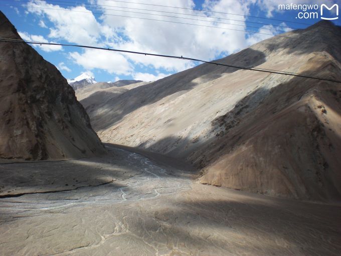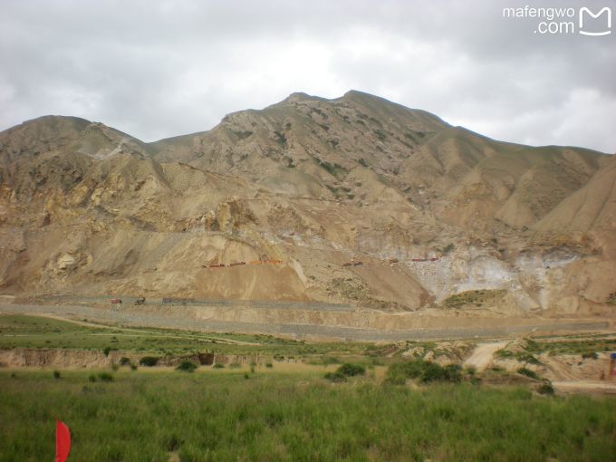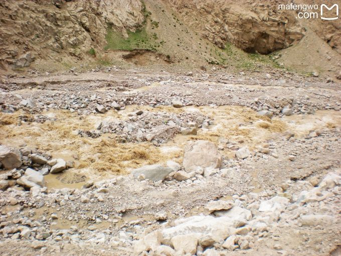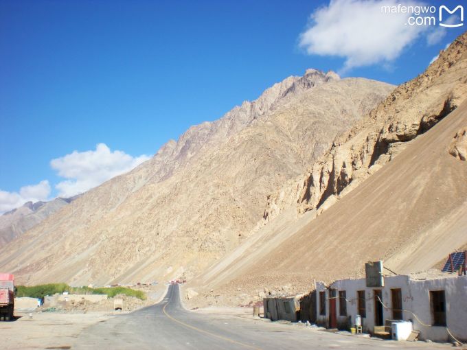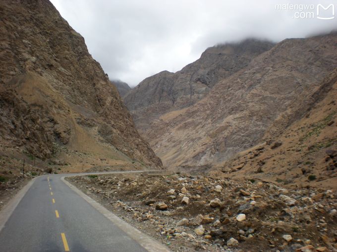 与库地达坂相比,其凶险更胜一筹。"麻扎达坂尖,陡升五千三"。新藏线最长的大坂是麻扎,它位于麻扎兵站的北方,上下各近40公里,连续的坡道。麻扎达坂高山陡峭,直入云天,到处是不尽的岩石山寸草不生,满山敷满褐色砾石。路边的嶙峋而狰狞的巨大山体,相互扭结交错,坦诚地显露着彼此间力的较量。
