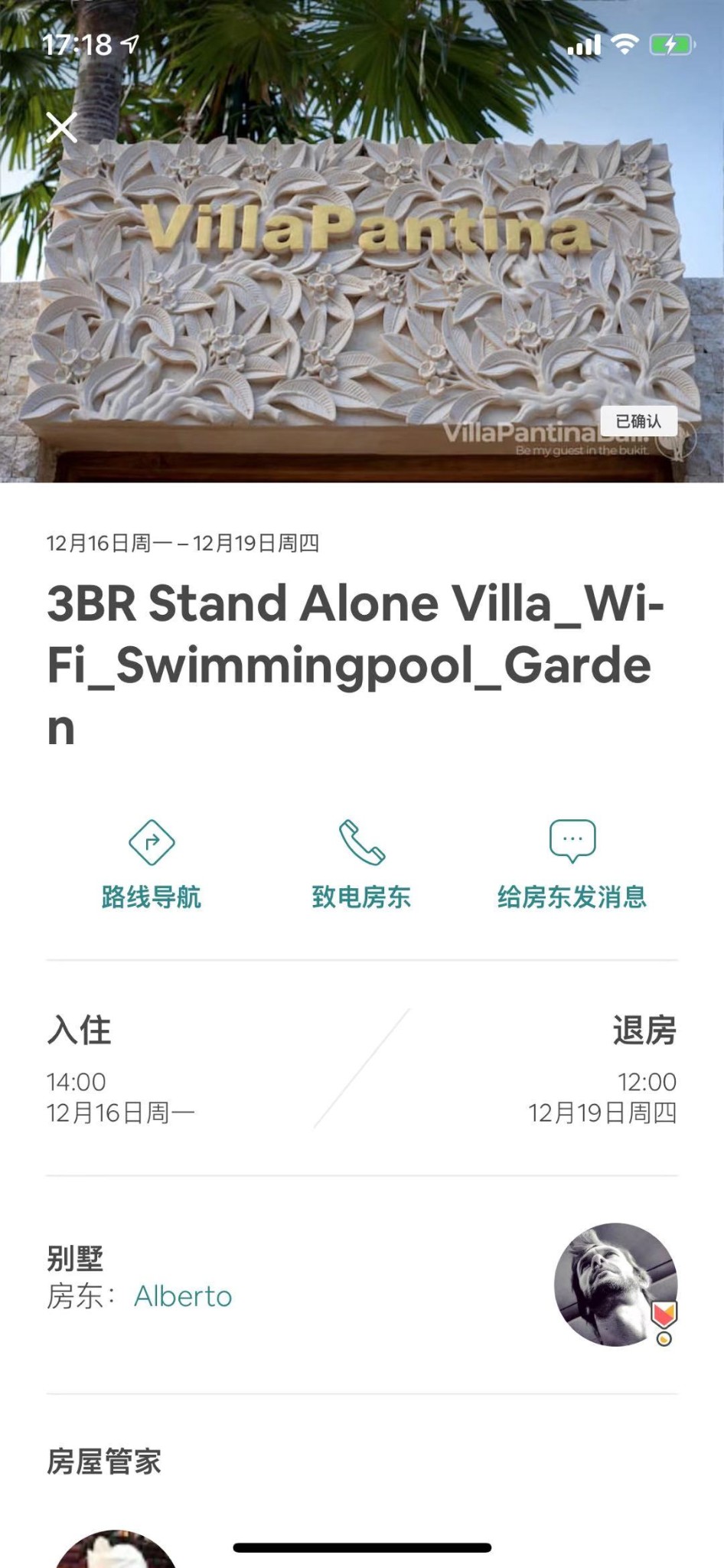 00:30抵达巴厘岛,排队入境,拿行李,再驱车前往民宿就两个小时过去了~提前跟房东告知过抵达时间,结果到了民宿居然没有工作人员等我们,打房东电话不接,WhatsApp留言也没有人接,被逼无奈,小姐姐只好爬墙而入寻找钥匙