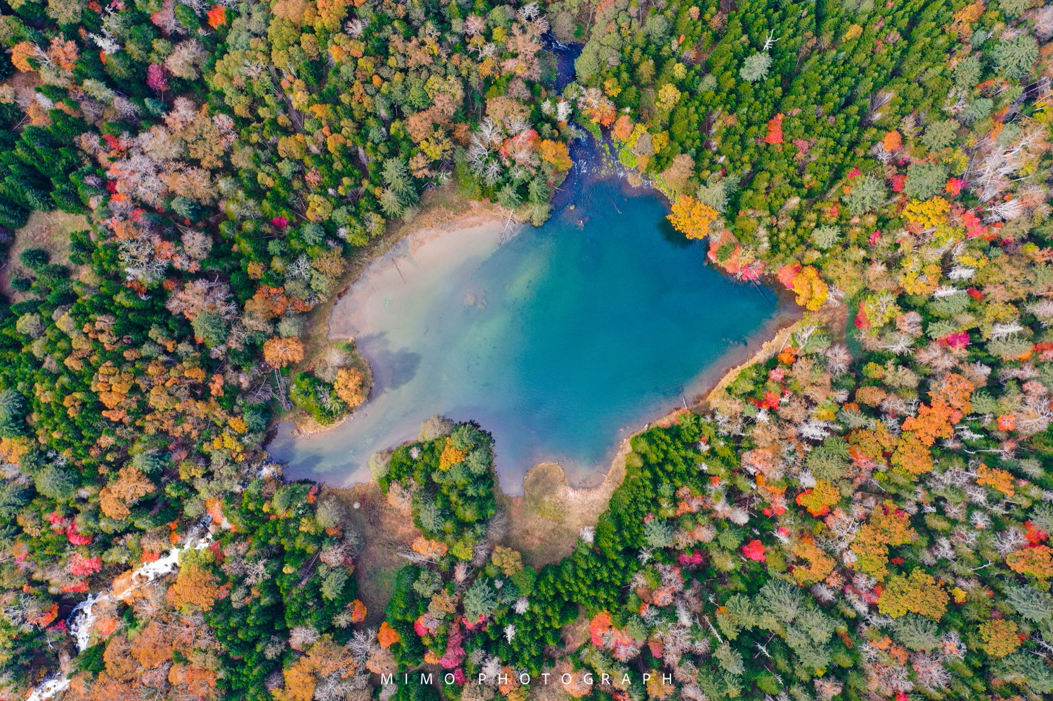 在龙见桥附近发现了一个藏在森林里的碧蓝色湖泊。