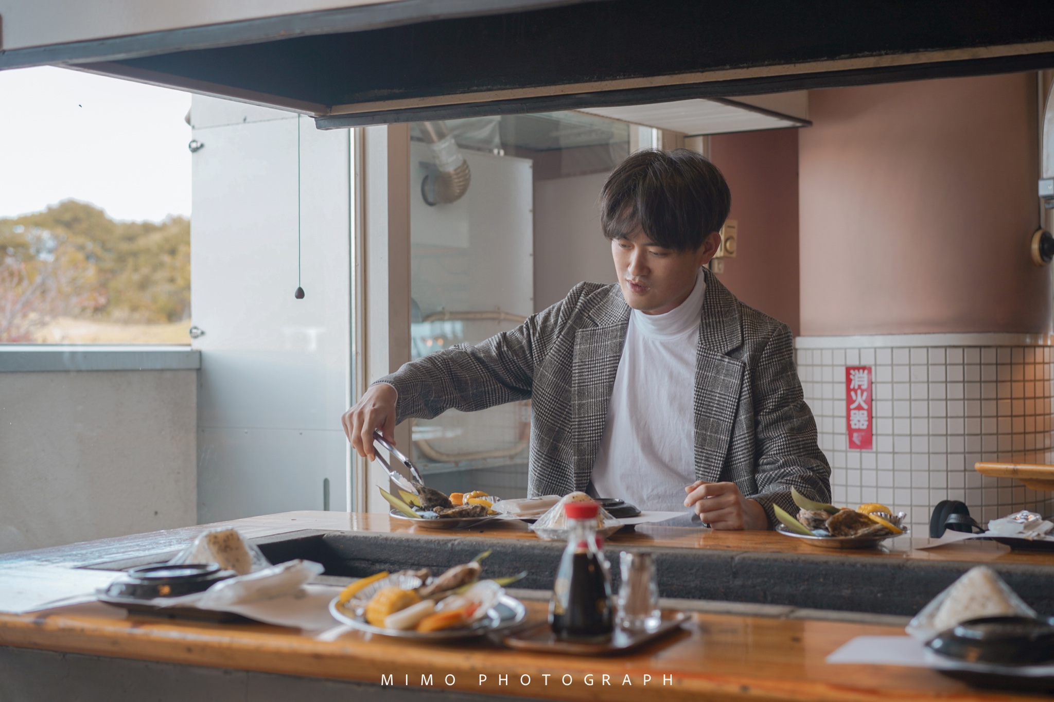 挑海鲜摆拍。