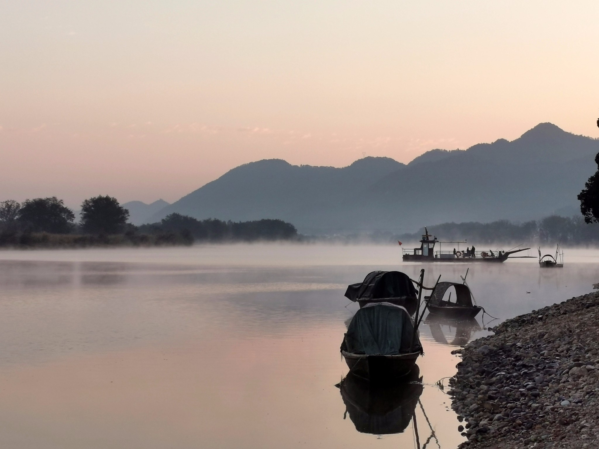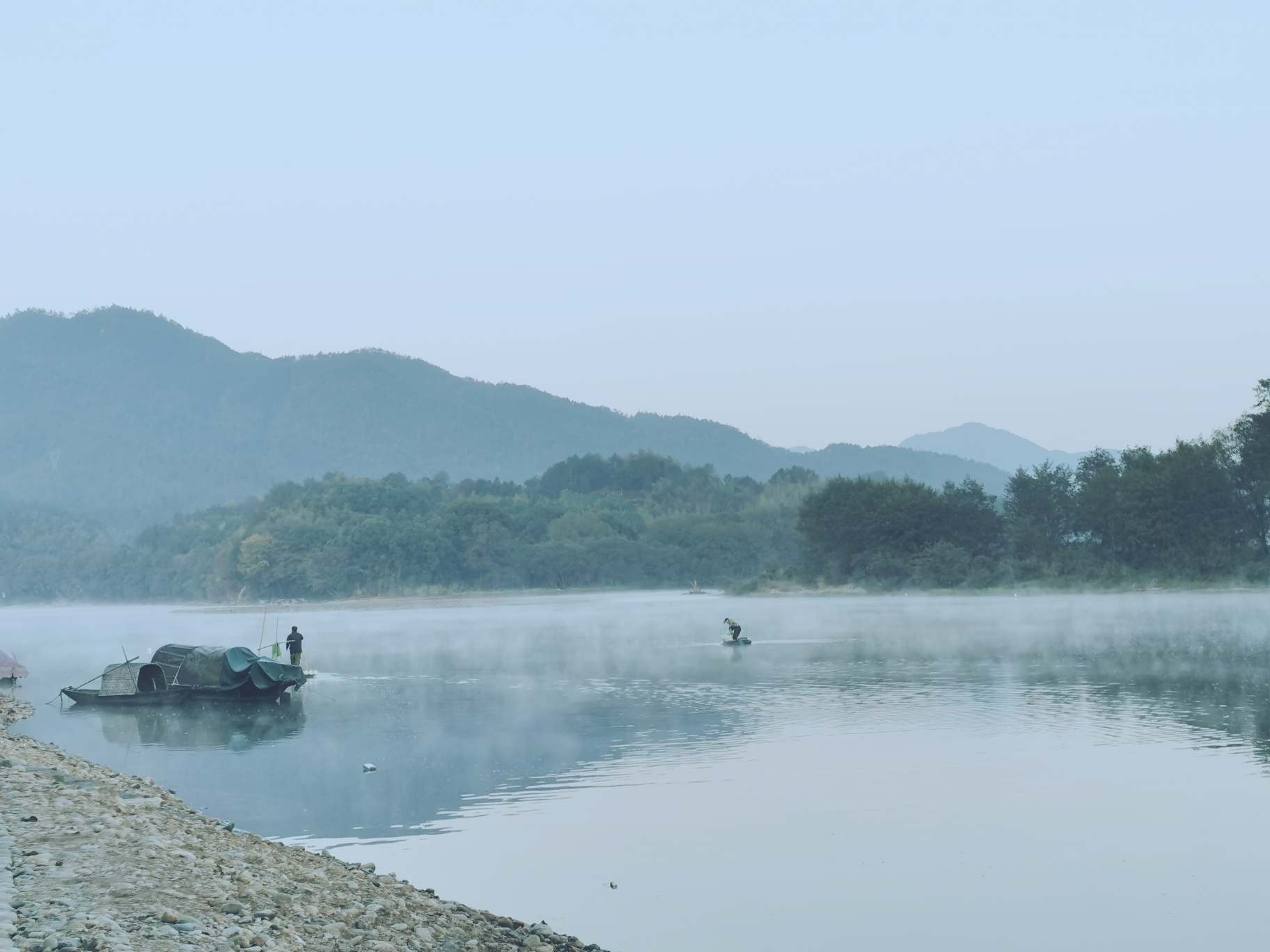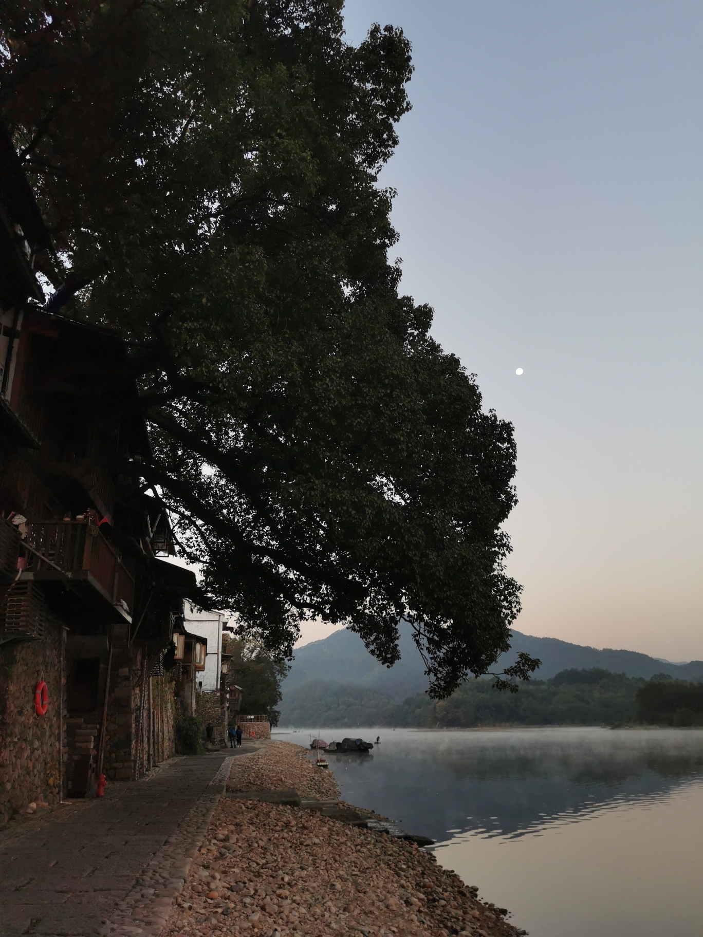 一早,我们来到河边。据说这是陀河的上游,这里叫做大溪。古堰和画乡是隔江相望的两个村。我们住在画乡村,如果不坐船去对面的古堰就不用买门票,一般都要坐船的,所以要买门票80块钱。浙江是阿里系的大本营,客栈栈主都在某宝上卖门票,实际上也便宜不了几块钱。