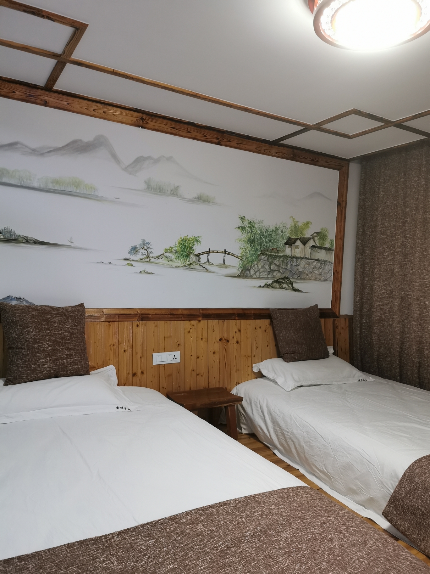 这家民宿是父母加儿子一起开的,不知道是不是因为11月份淡季,每间房只100多点含早。房间在二层沒有电梯(二层还有个大大的阳台茶室),老父亲老板热情帮我们拎行李进房间!然后又陪司机平同学去安排车,很勤快朴素的一家人,给大上海来的平同学留下极深的印象。