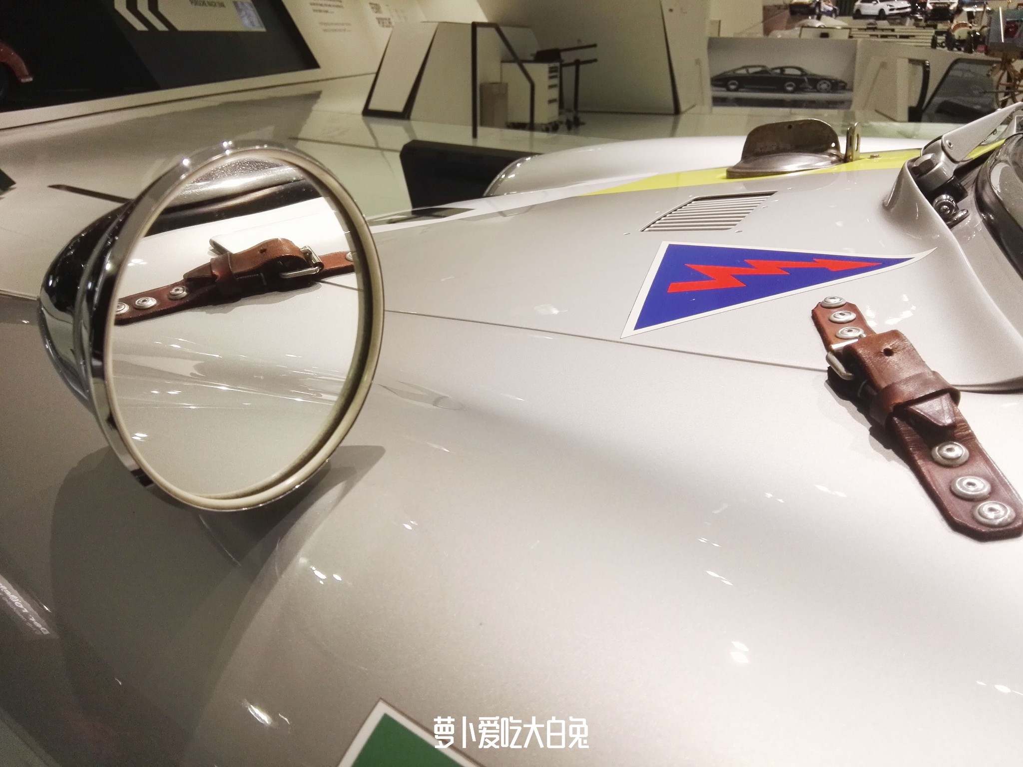 从车身涂装看,这台356B来自SCUDERIA SSS车队。整车涂装采用银色为主色调,标志性的左侧反光镜。有别于其他保时捷,这台保时捷引擎盖上的保时捷字样为金色。从外观上,丝毫看不出这是一台上世纪50年代的产品,只有从引擎盖上的小皮带才能看出这款车的年龄。因为保时捷和阿巴斯是很好的朋友,双方后来在赛车领域也有很多合作,所以这台356的车身侧面有ABARTH(即菲亚特所属的意大利阿巴斯股份有限公司)的标志也就不足为奇了。