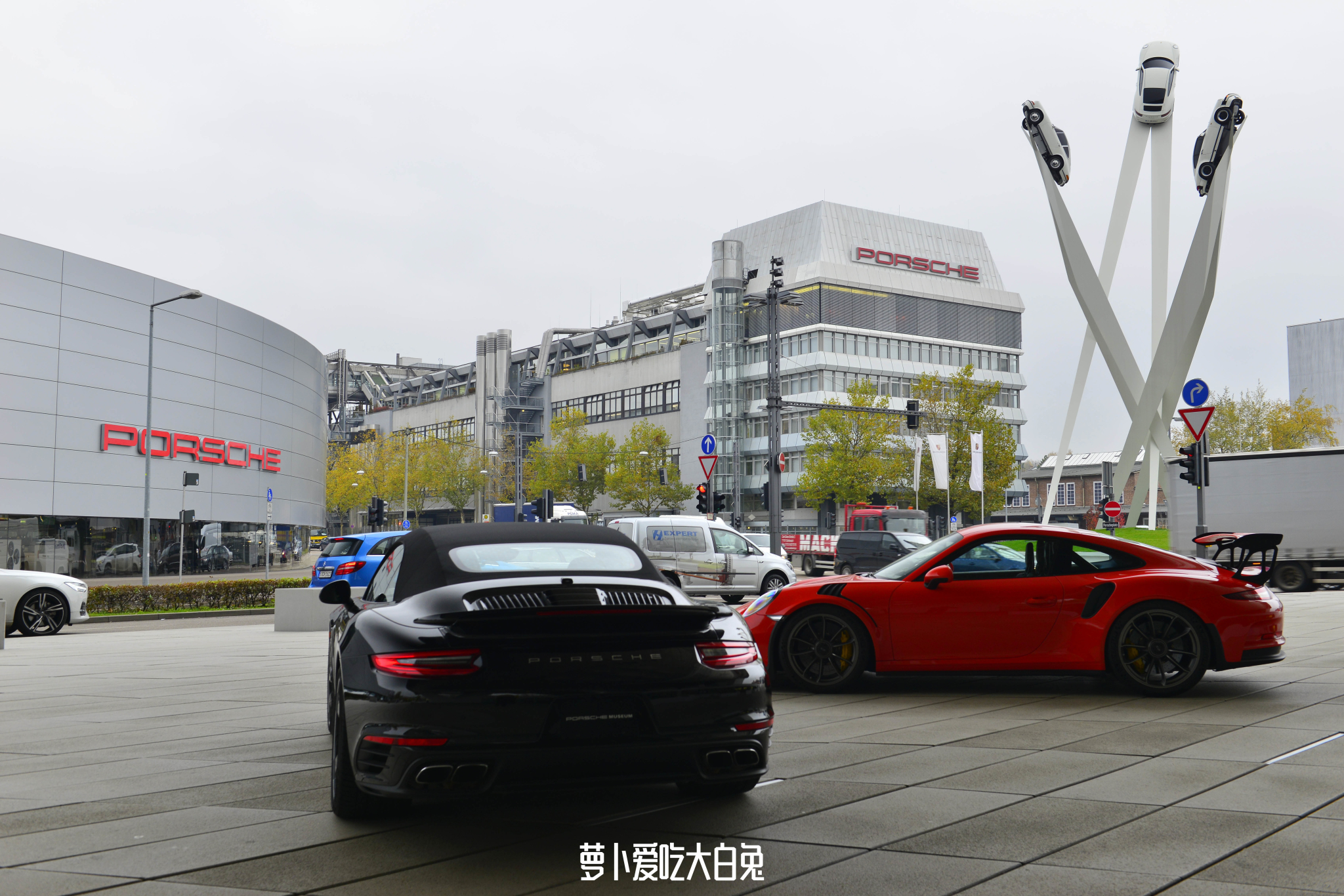 2017年11月7日,我们从斯图加特市中心出发,坐地铁前往保时捷博物馆。走出车站,一个保时捷的世界就在眼前展开。左侧的是保时捷中心,门前停放着很多保时捷,还有不少已经被装上拖车准备发货;右侧的是保时捷博物馆,门口停放的保时捷定期更换,我们去的时候是两台911。