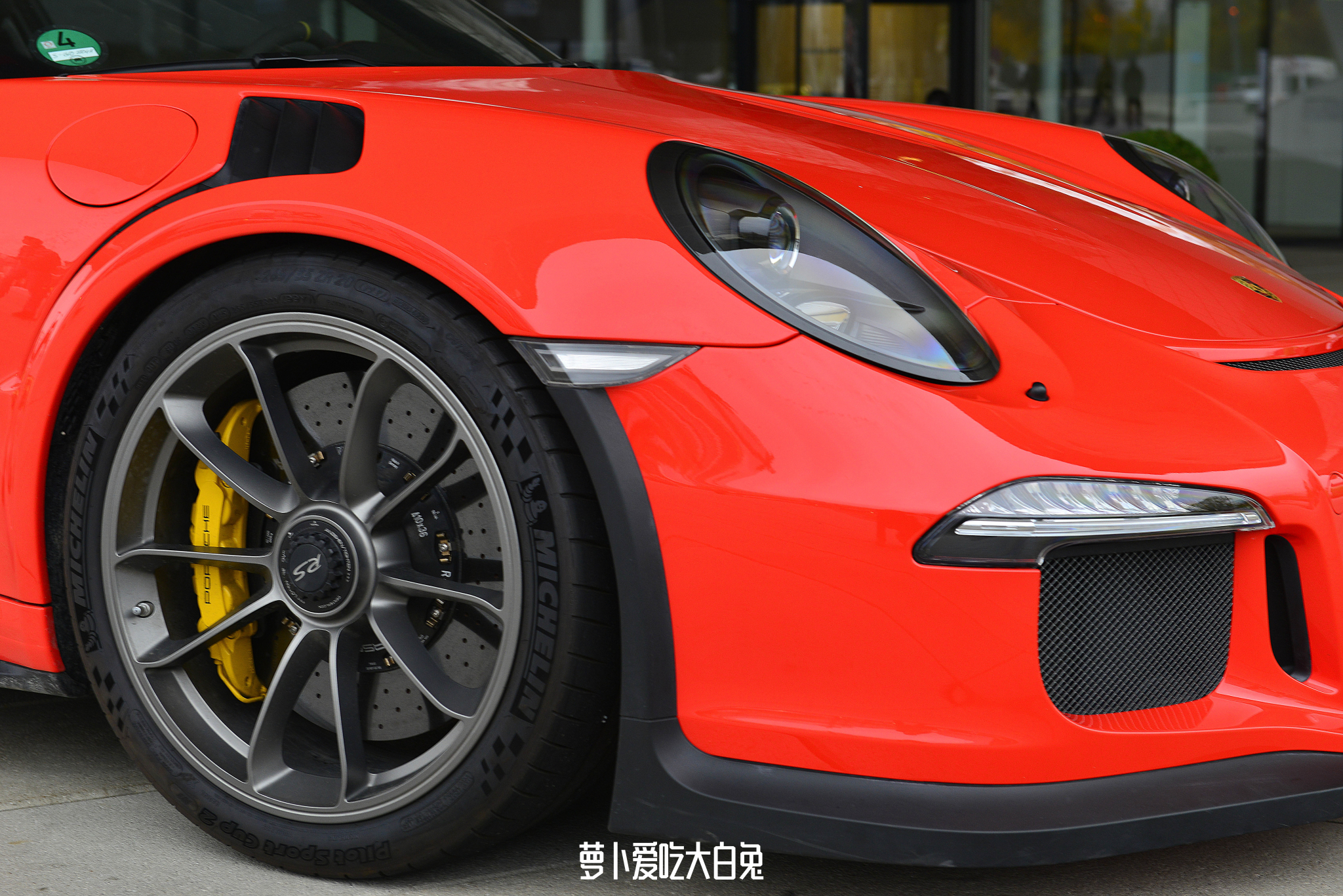 车身SCUDERIA SSS车队的标志,引擎盖上的保时捷字样为金色