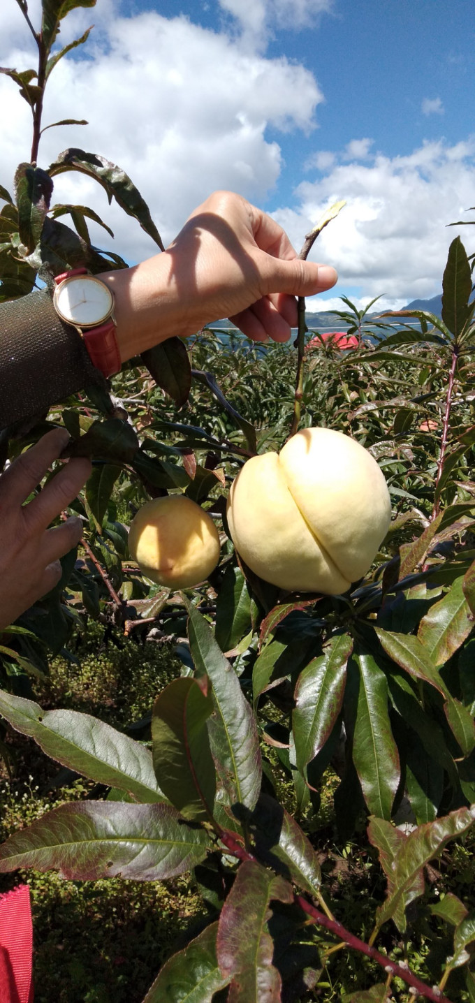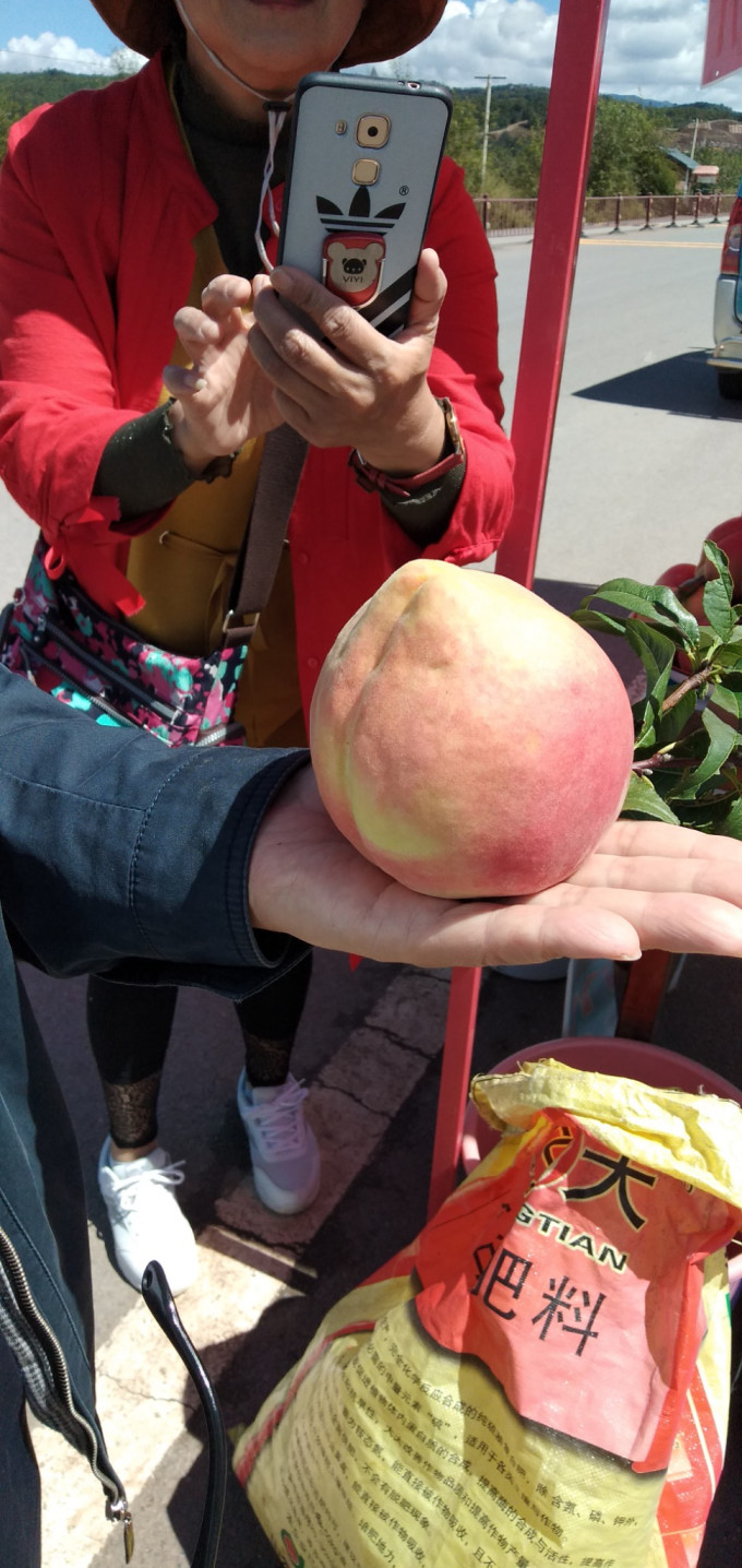 与普通桃子比较,就能看出它的个儿头了
