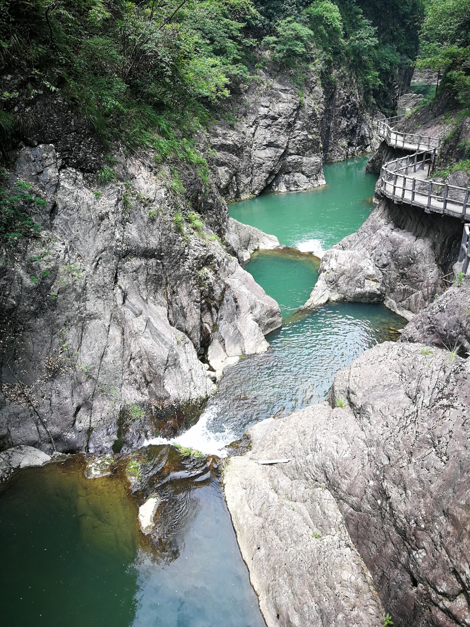 金华磐安夹溪十八涡(6月去的),里面有一些冰臼遗迹和瀑布,4A景区。