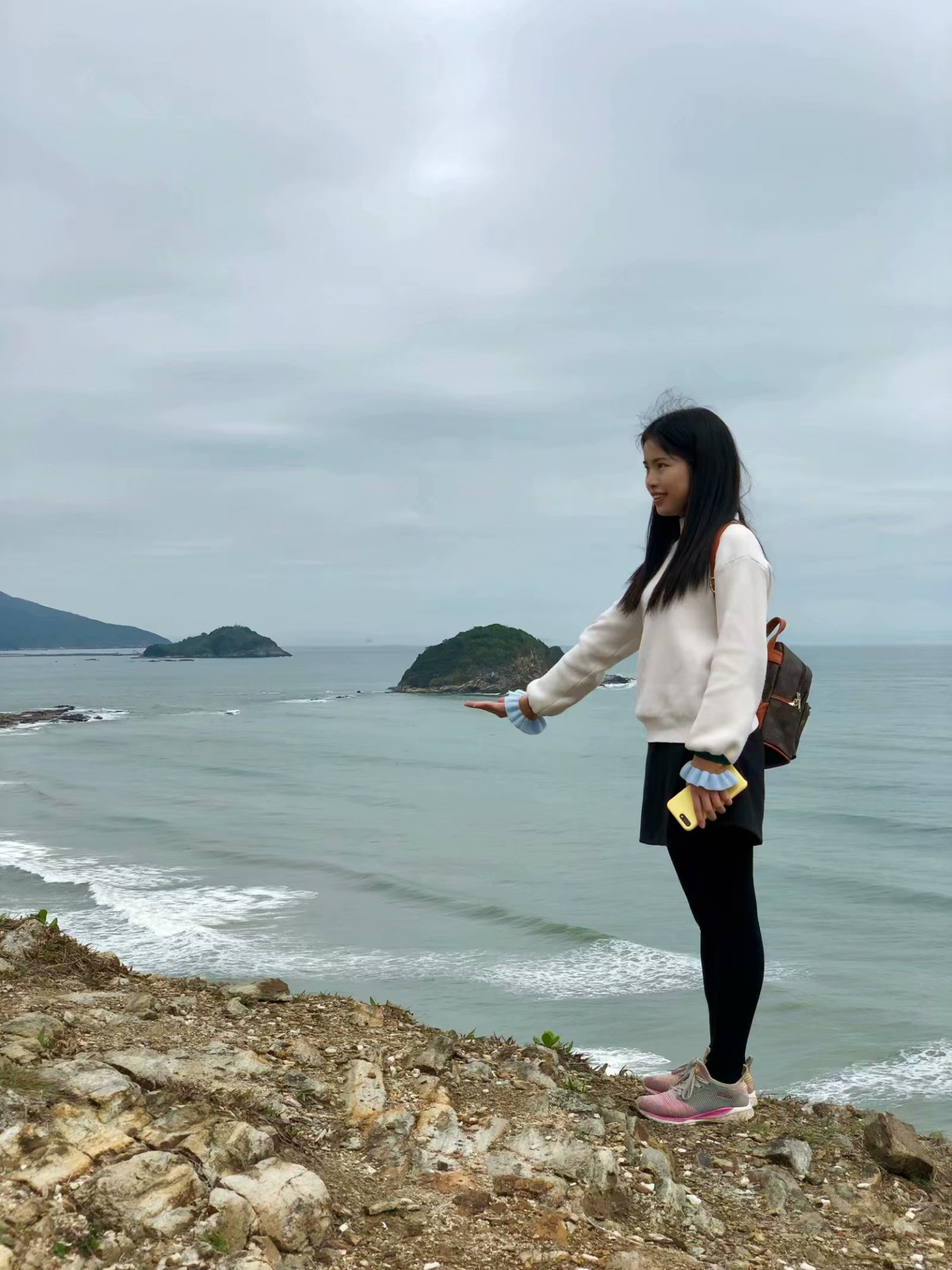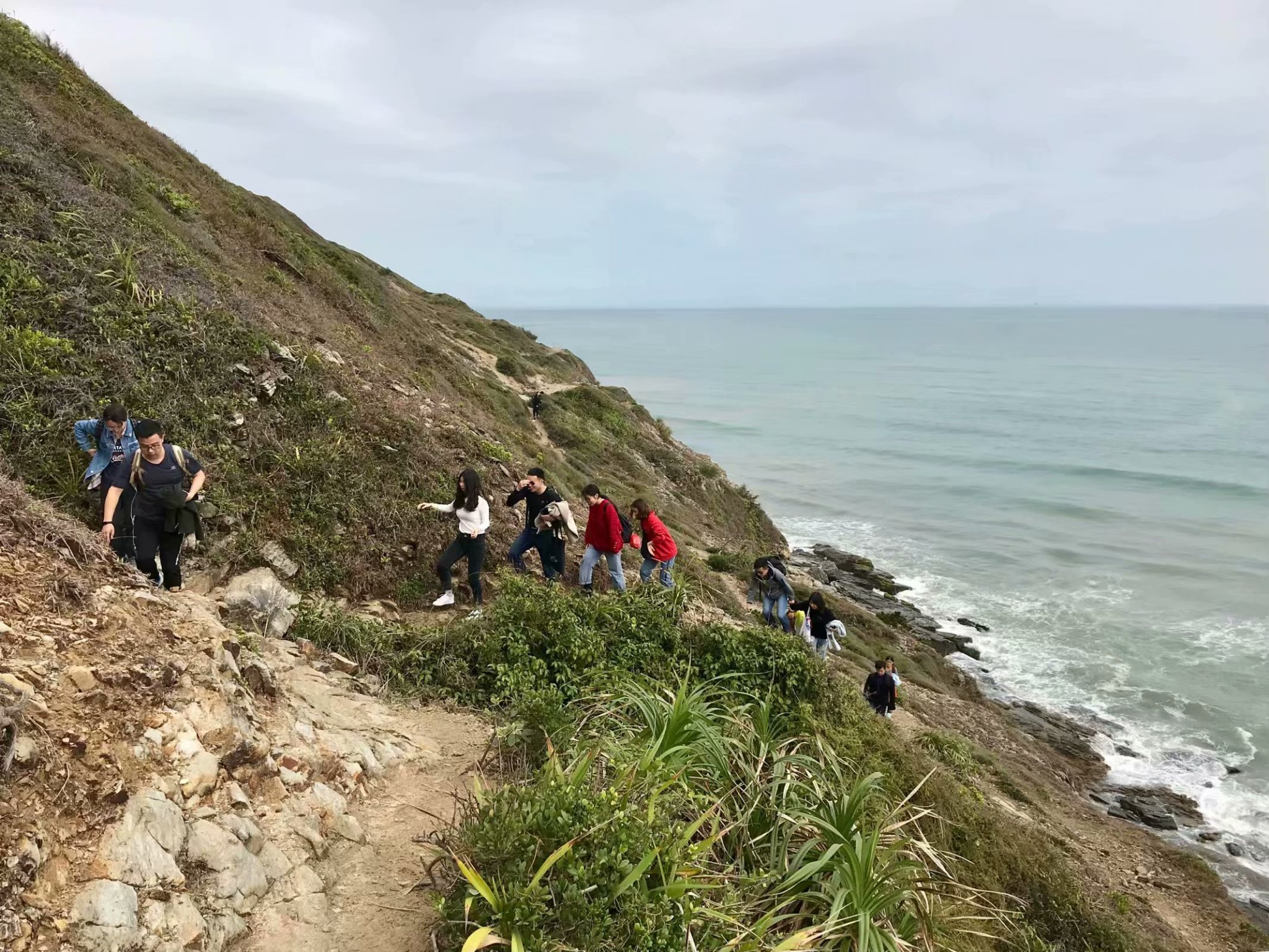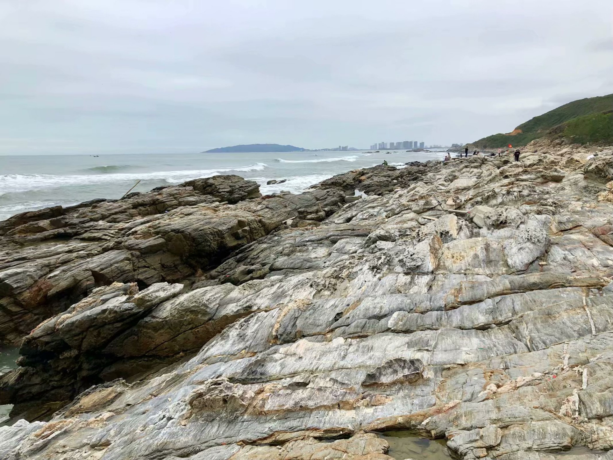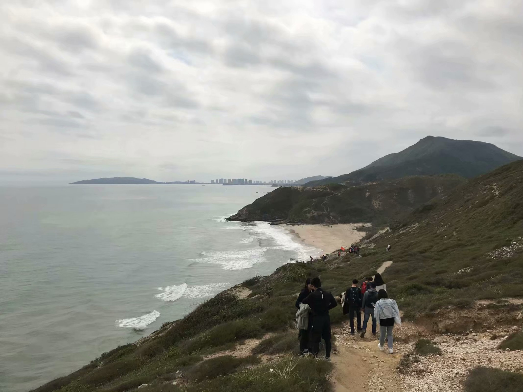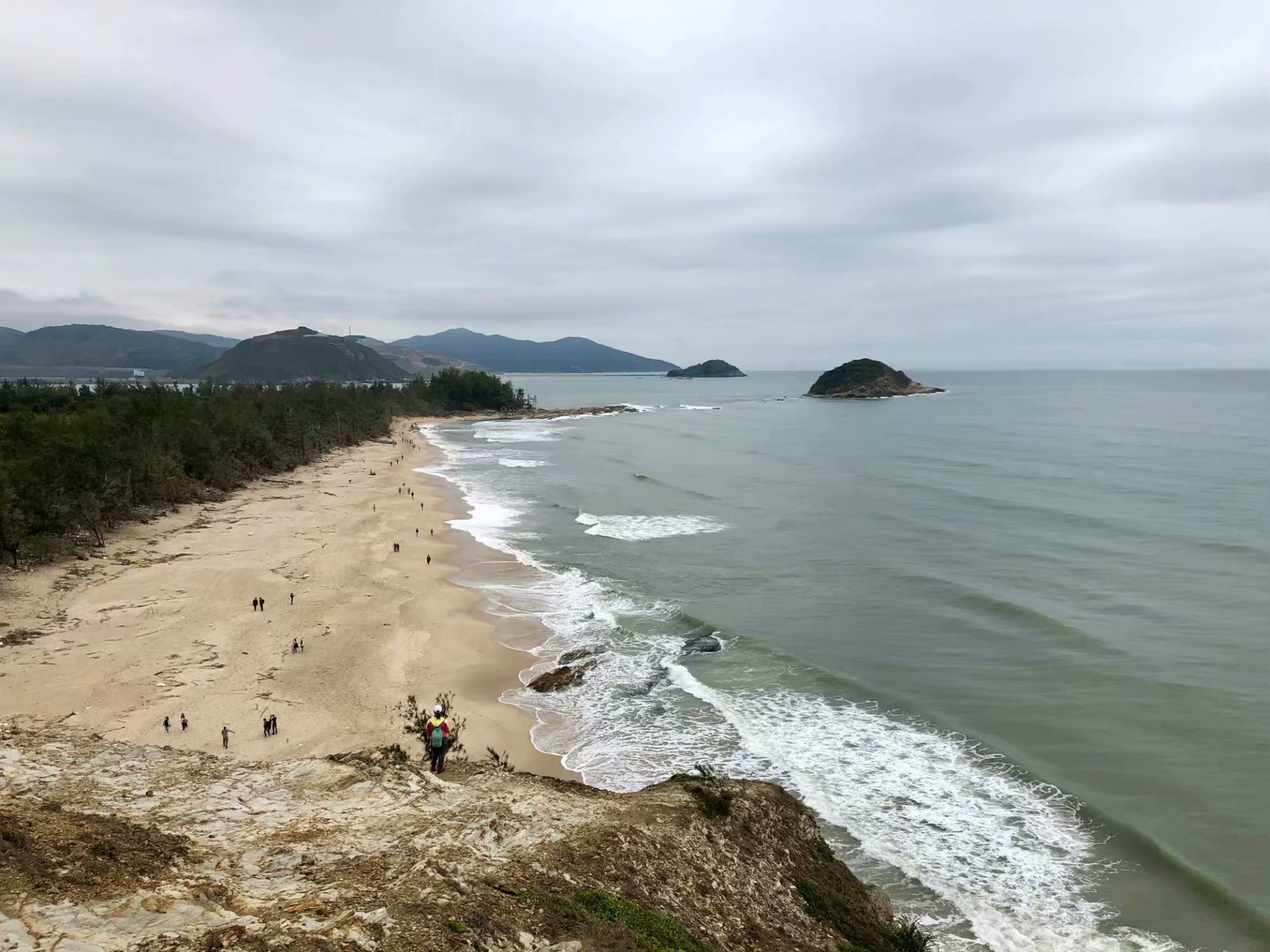 爬上小山坡,观赏整个海岸线全景。