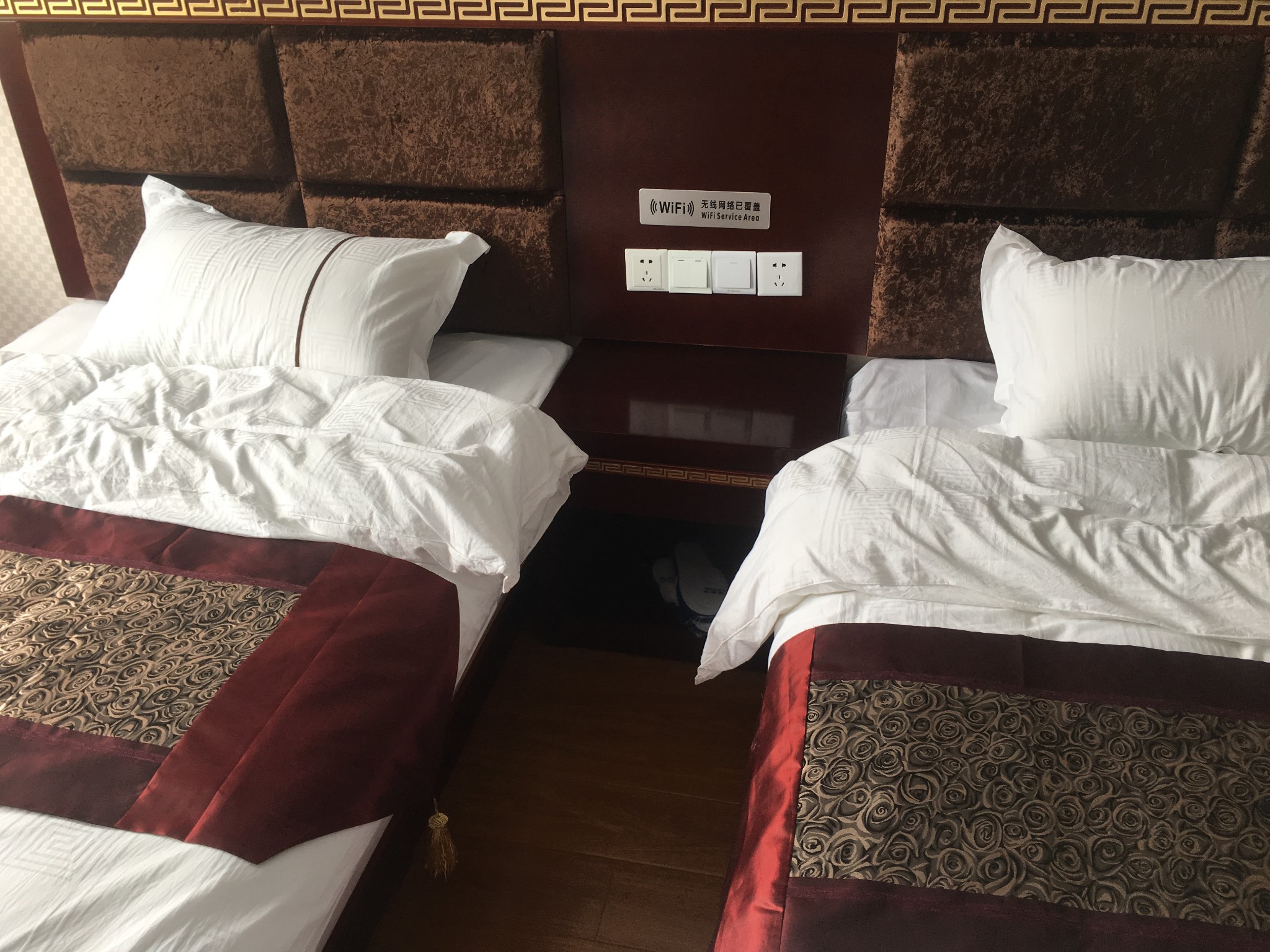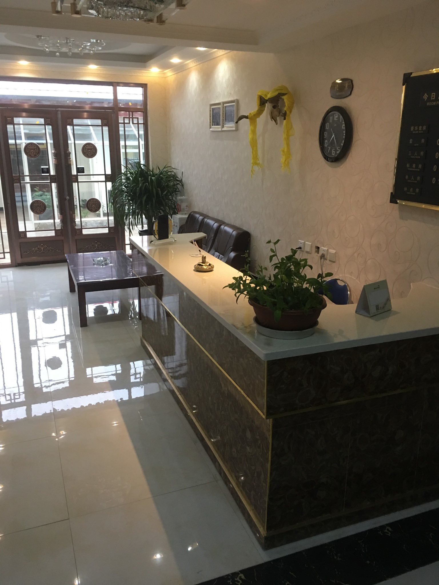 老板非常热心。这是座自己投资的、标准很高、我说可以挂星的多层“宾馆”