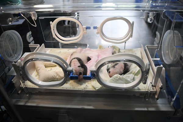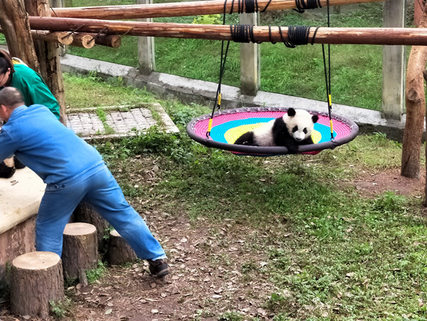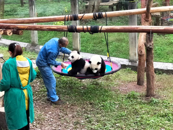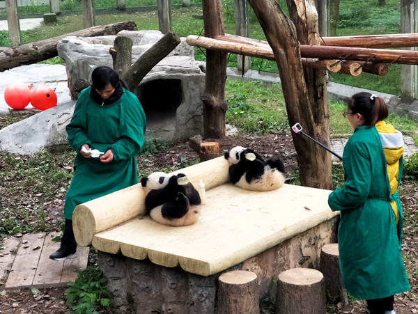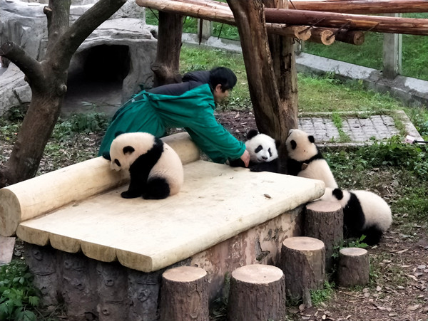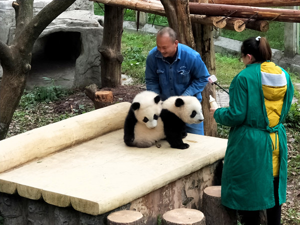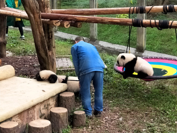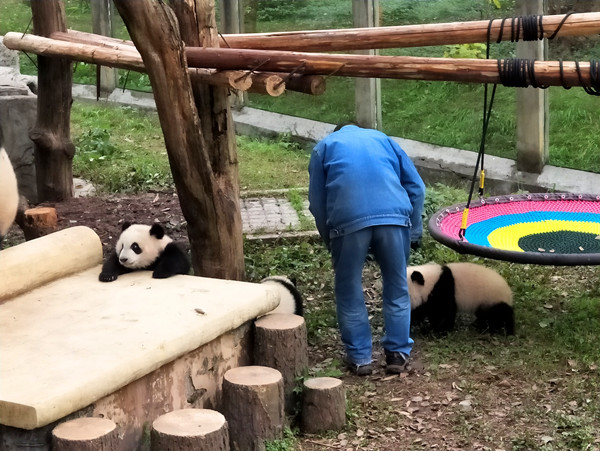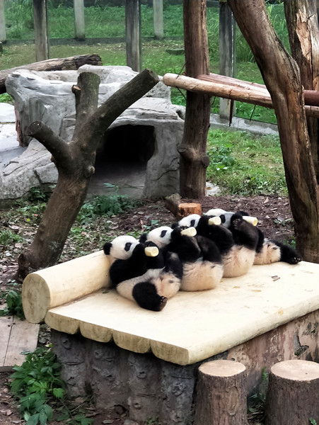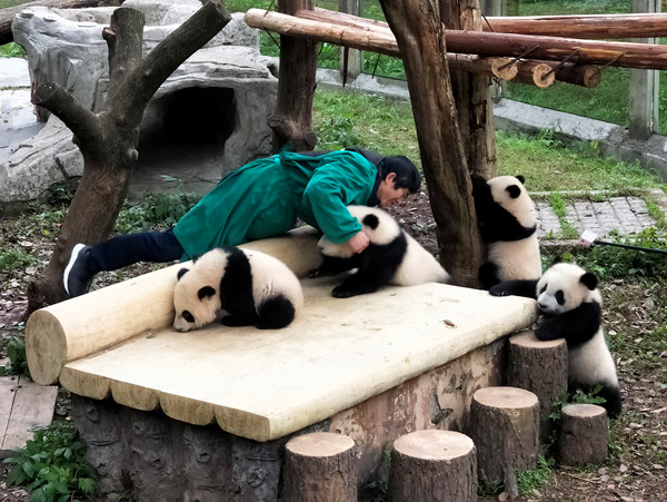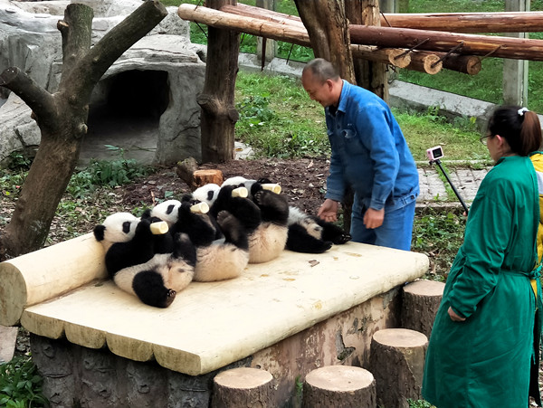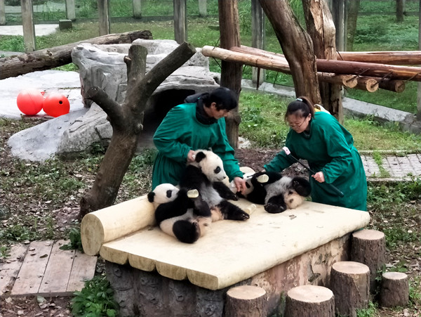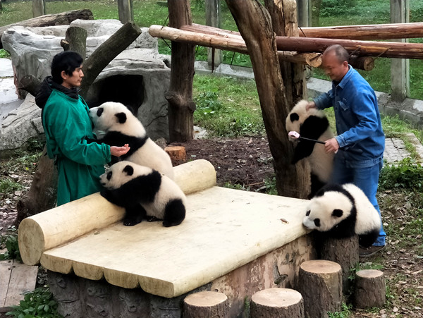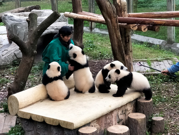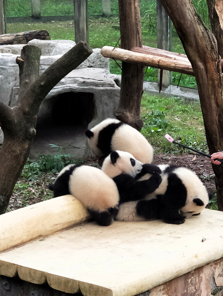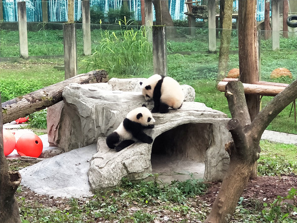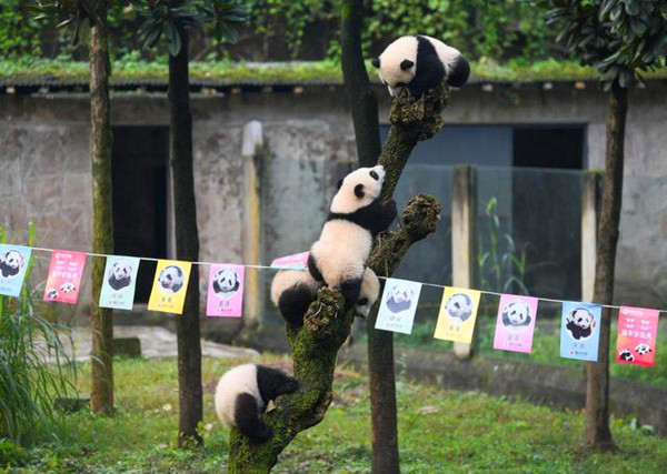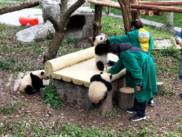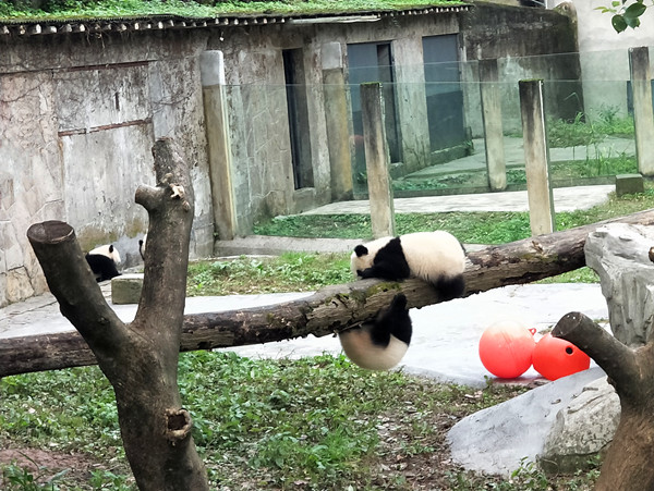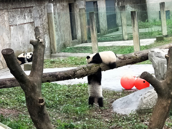 重庆动物园的四只熊猫宝宝——双双、重重、喜喜、庆庆