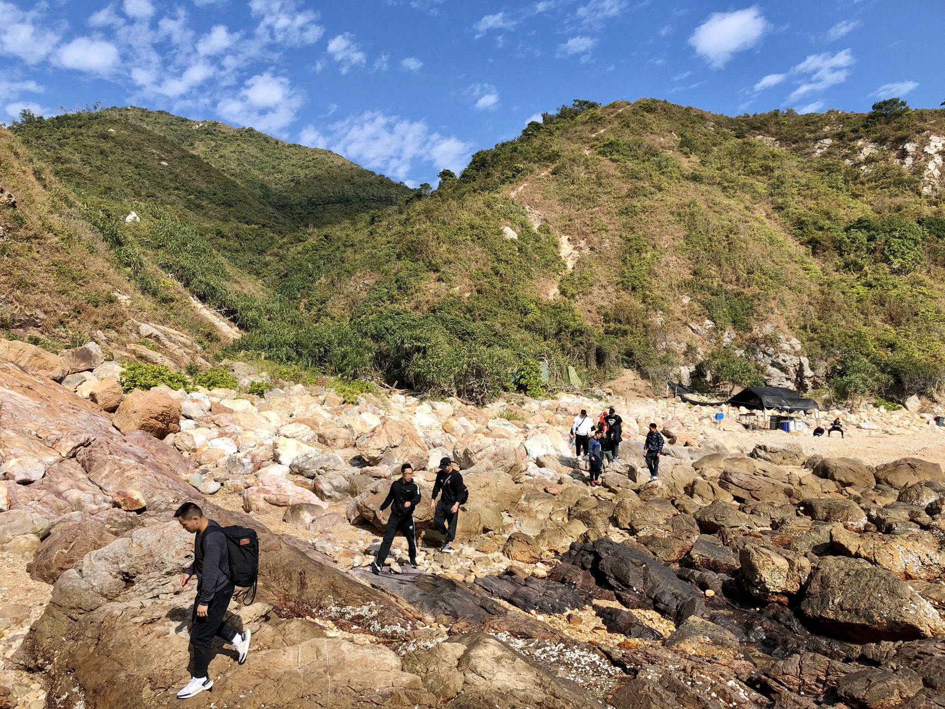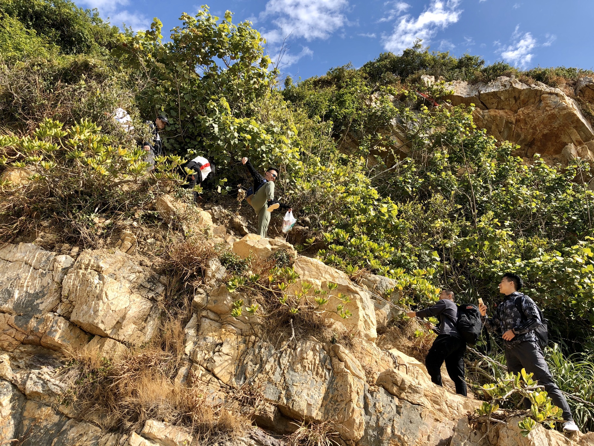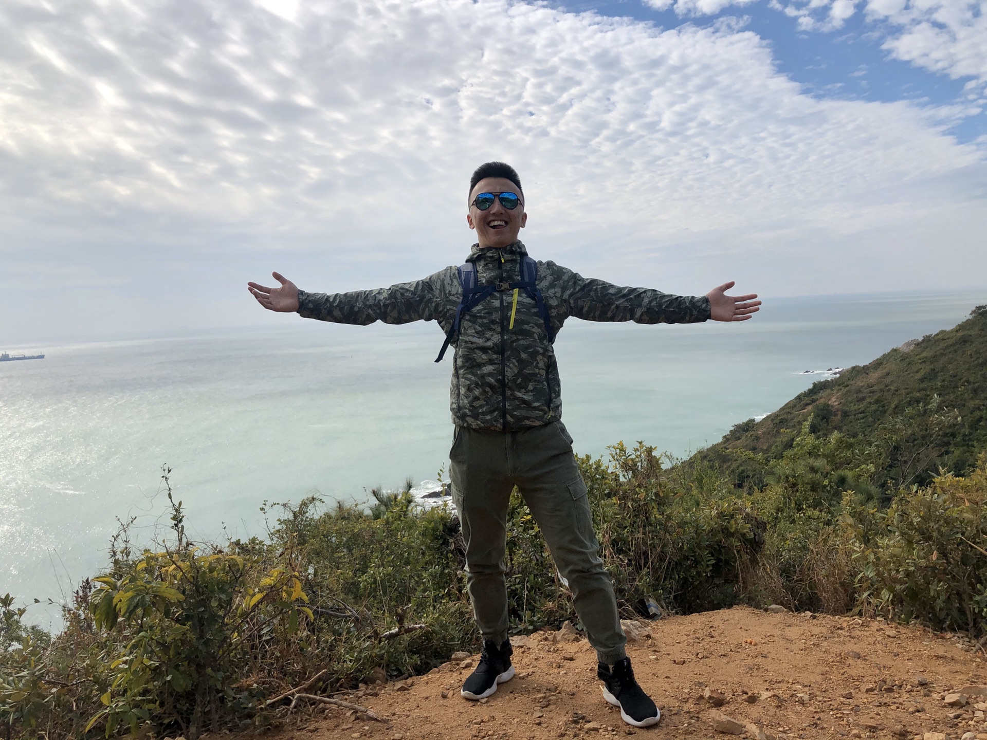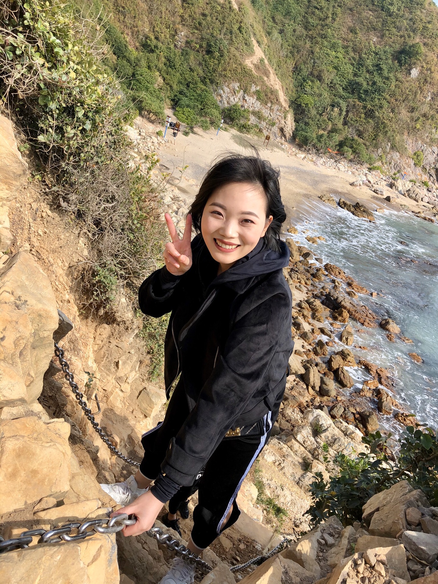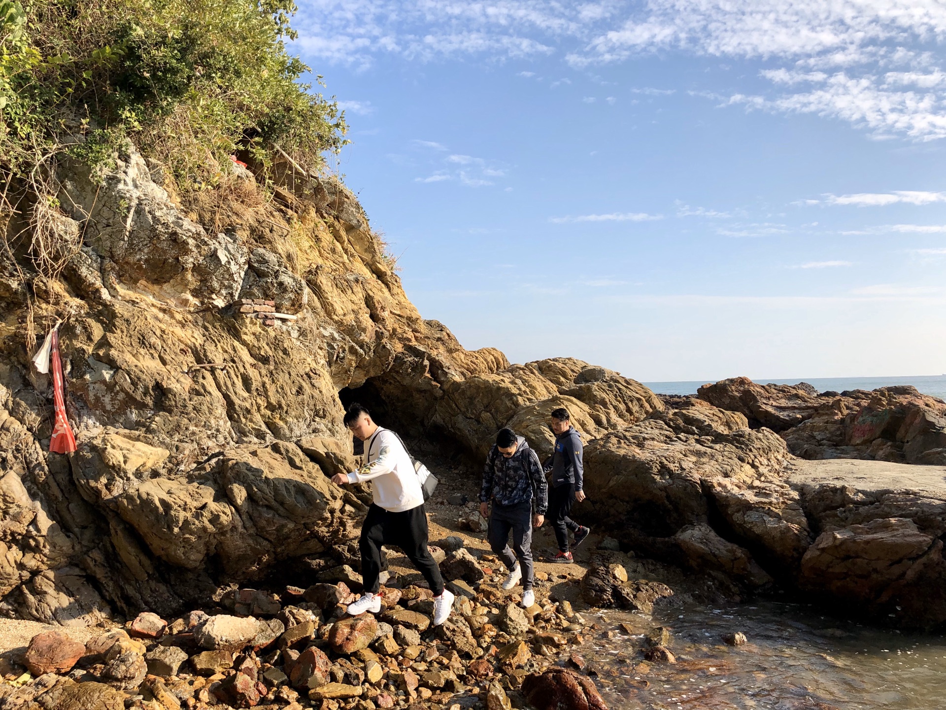 两公里山路后来到海边,与大海零距离接触。