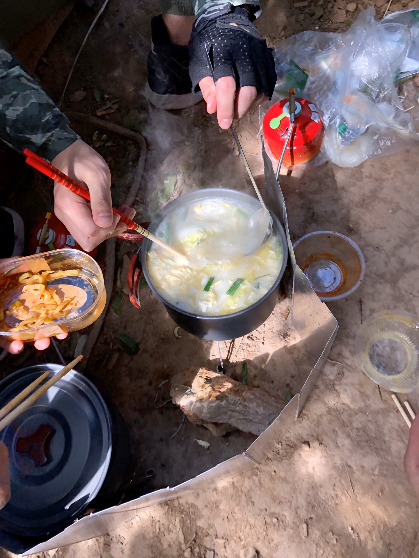 到达午餐地点,开炉煮面。