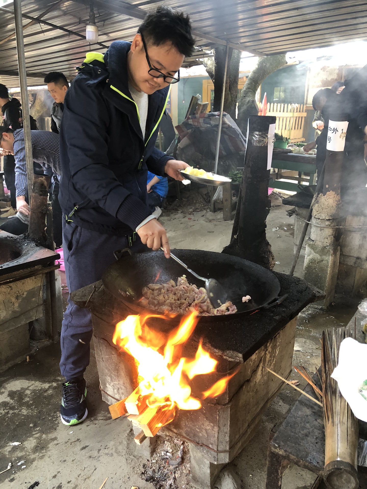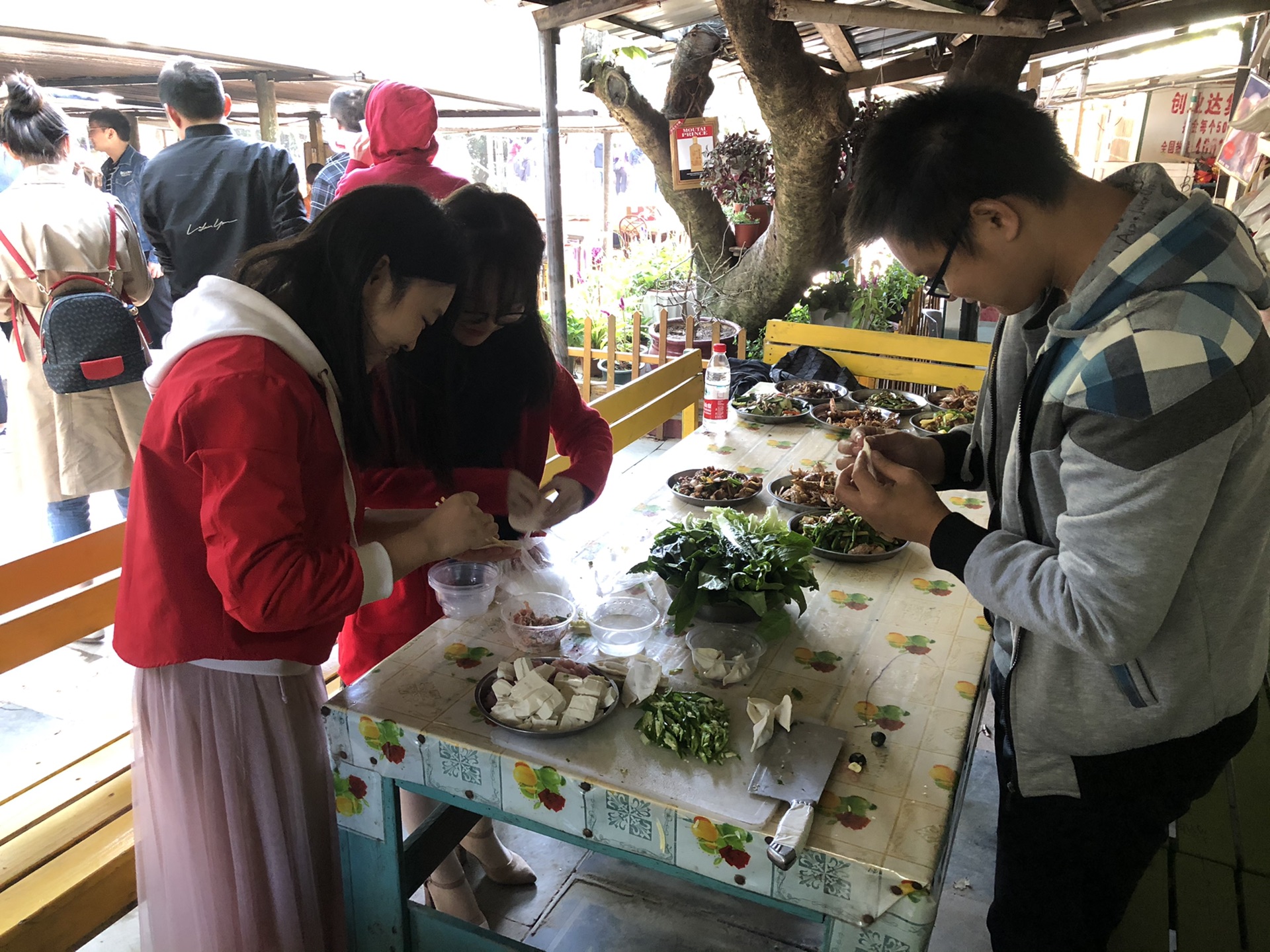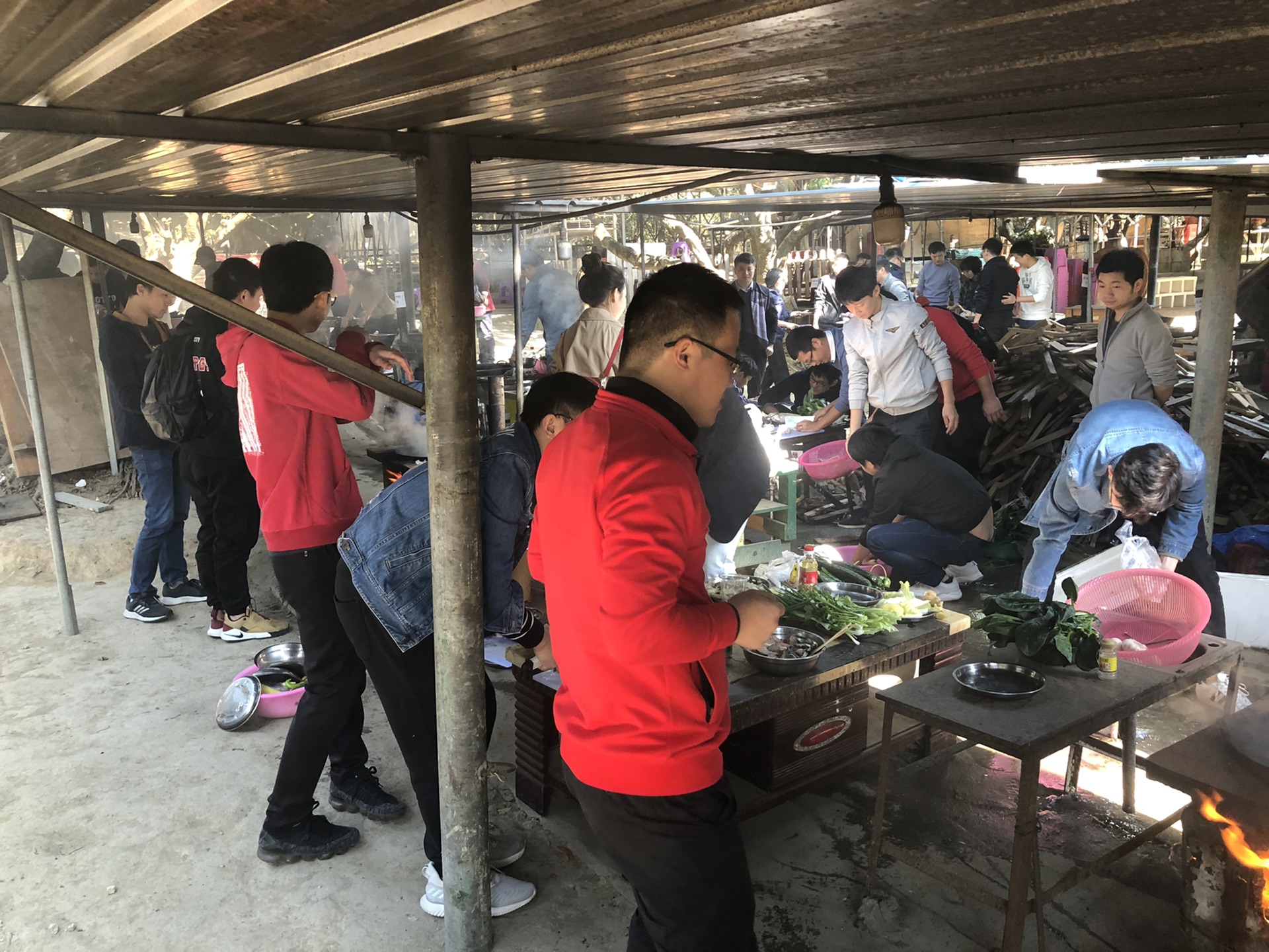 早上集合乘车来到科普特野炊生态园,分组完成,各自领取野炊食材和工具,自己动手,制作丰盛的午餐。