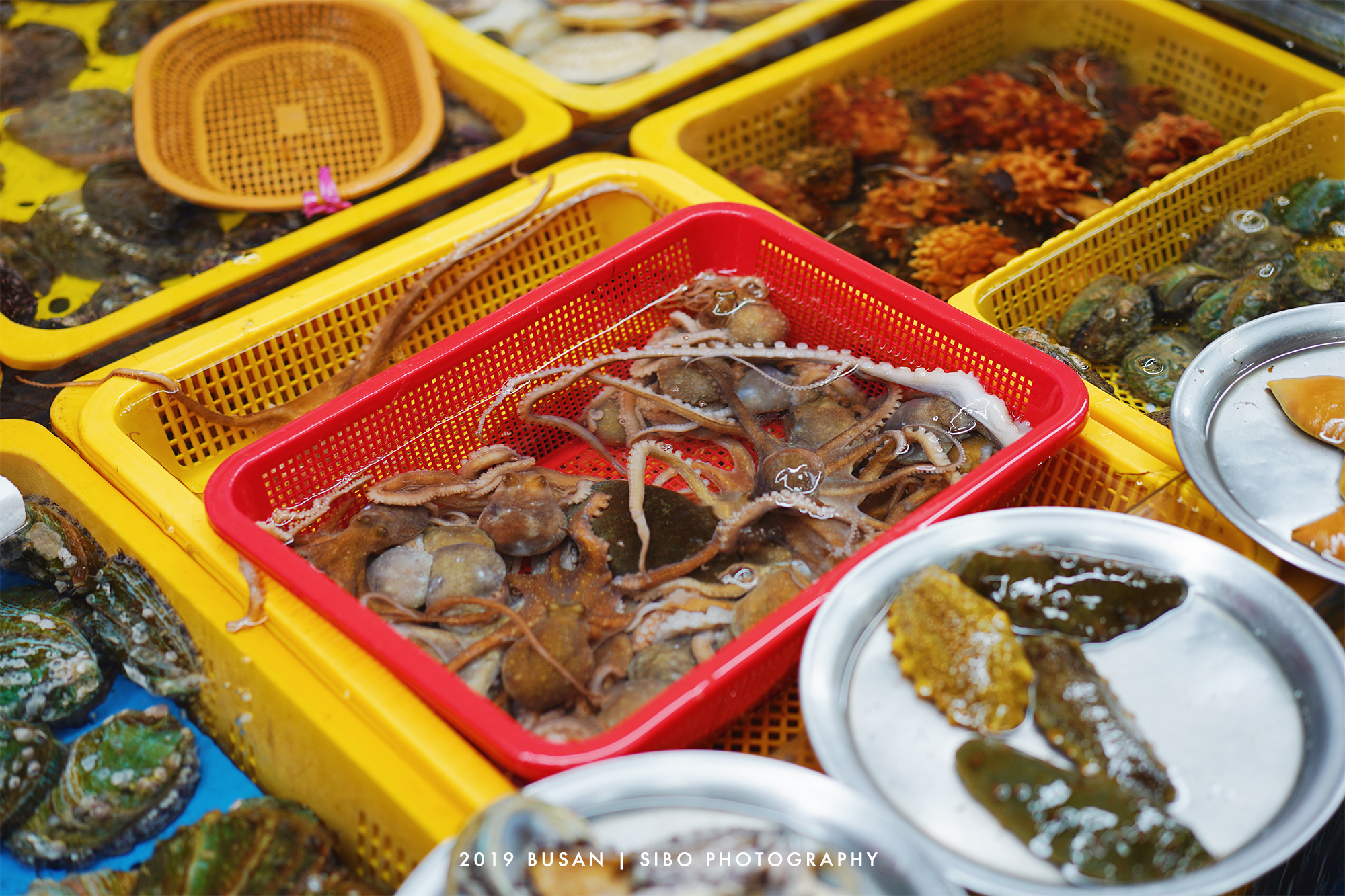 靠山吃山靠海吃海,作为著名的海滨城市,来到釜山打卡一顿海鲜大餐是必不可少的。虽然札嘎其市场的价格并没有像泰国那样低廉,但是其海产的新鲜度和特色的料理方式,还是非常值得到此品尝。虽说釜山东面还有一个很受本地人欢迎的机张海鲜市场,价格相对札嘎其也会更便宜一些。但从市区坐车过去大概需要40分钟左右,地理位置不太方便。因此,对于时间紧凑的游客们来说,在札嘎其市场吃海鲜必须安排上。