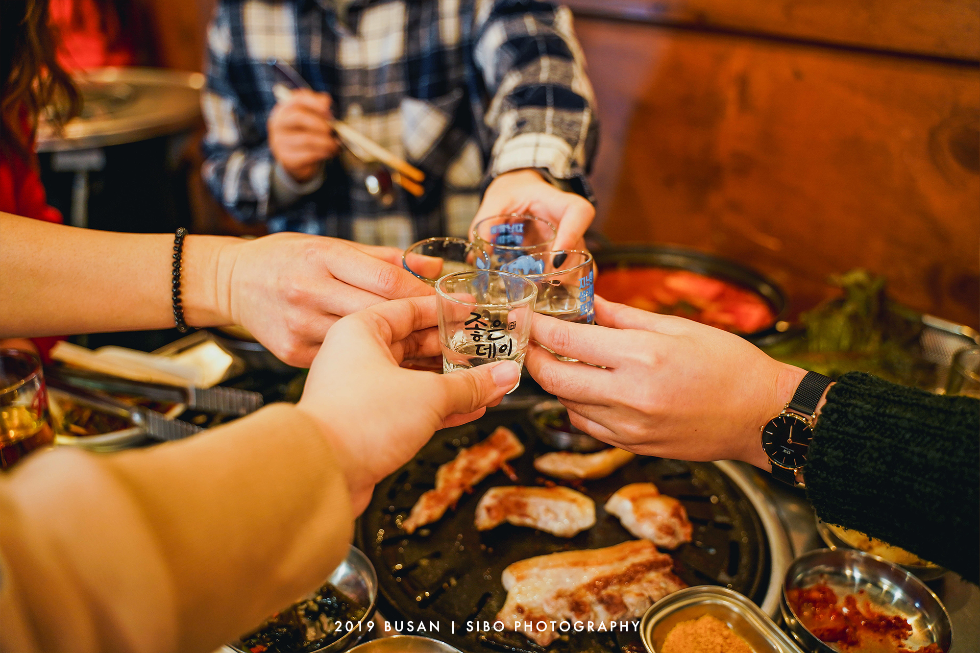 烤肉用苏子叶包上,一口咬下满嘴喷香,再干一口冰过的烧酒,釜山的夜晚,非常莫西达!