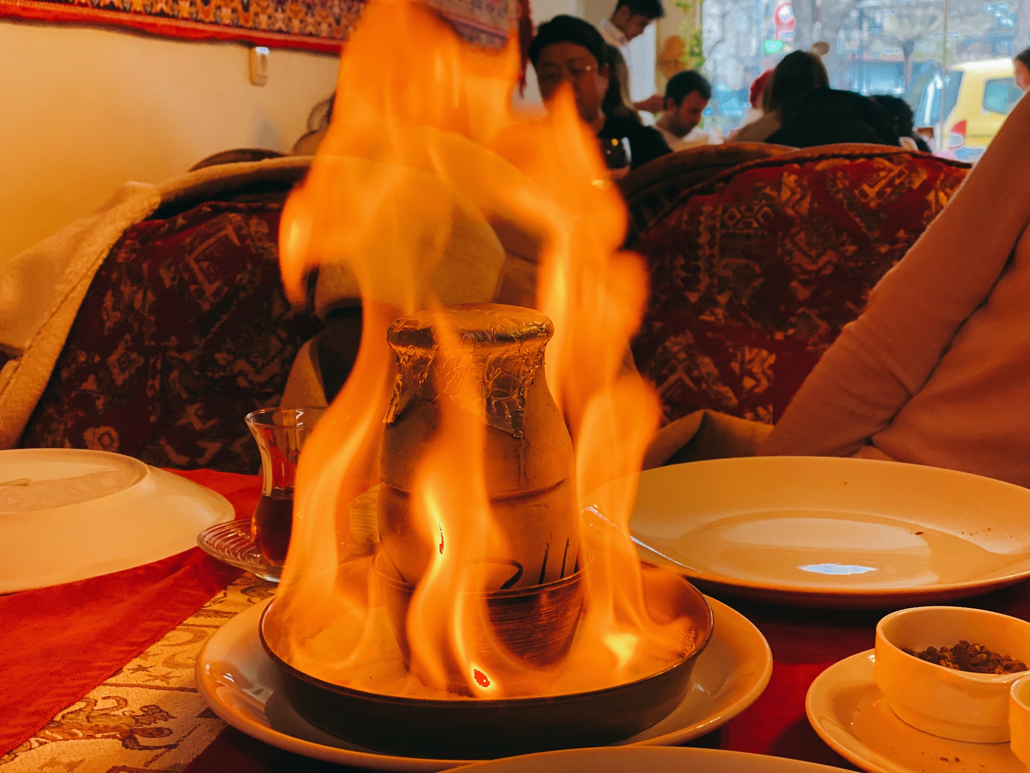 幸福不过是迎着白白的飞雪,听着咯吱咯吱的声音,在地毯店的庭院里舞蹈,跑去吃出名的瓦罐牛肉(Testi Kebabi)软烂的牛肉和西红柿以及各类蔬菜炖在一起 等着锅里飘出香味 瓦罐燃起跳跃的火花奶香味十足的米饭布丁(Firin Sutlac)也真的是太棒啦!