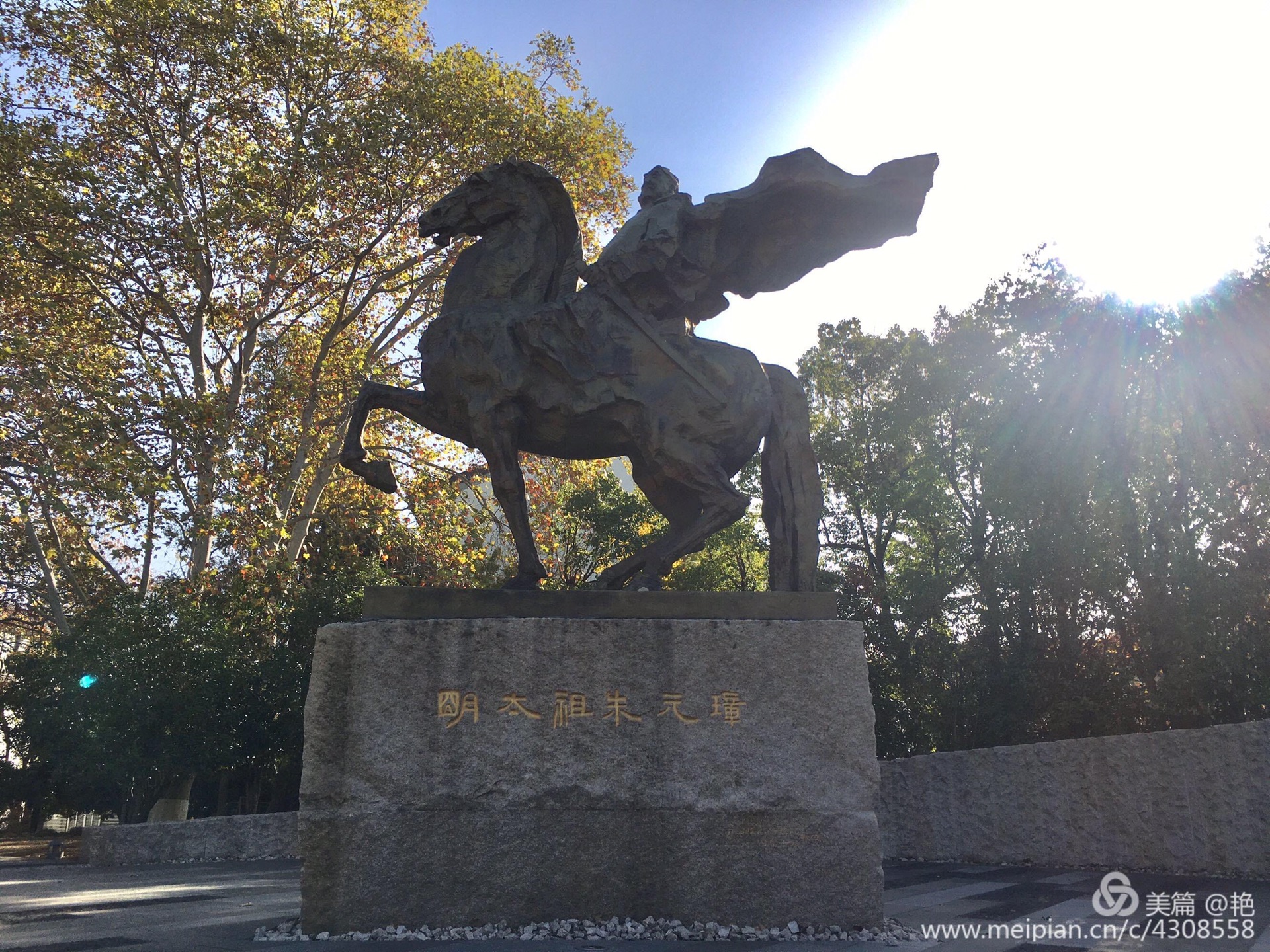 明孝陵有几个入口,为了不走回头路,选择从5号门即大金门进入,1号门出。快到5号门入口时看到的朱元璋雕像。