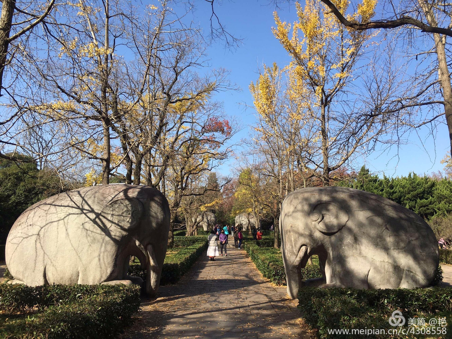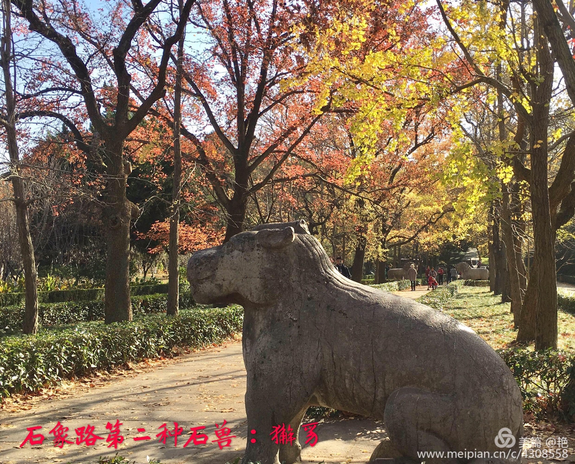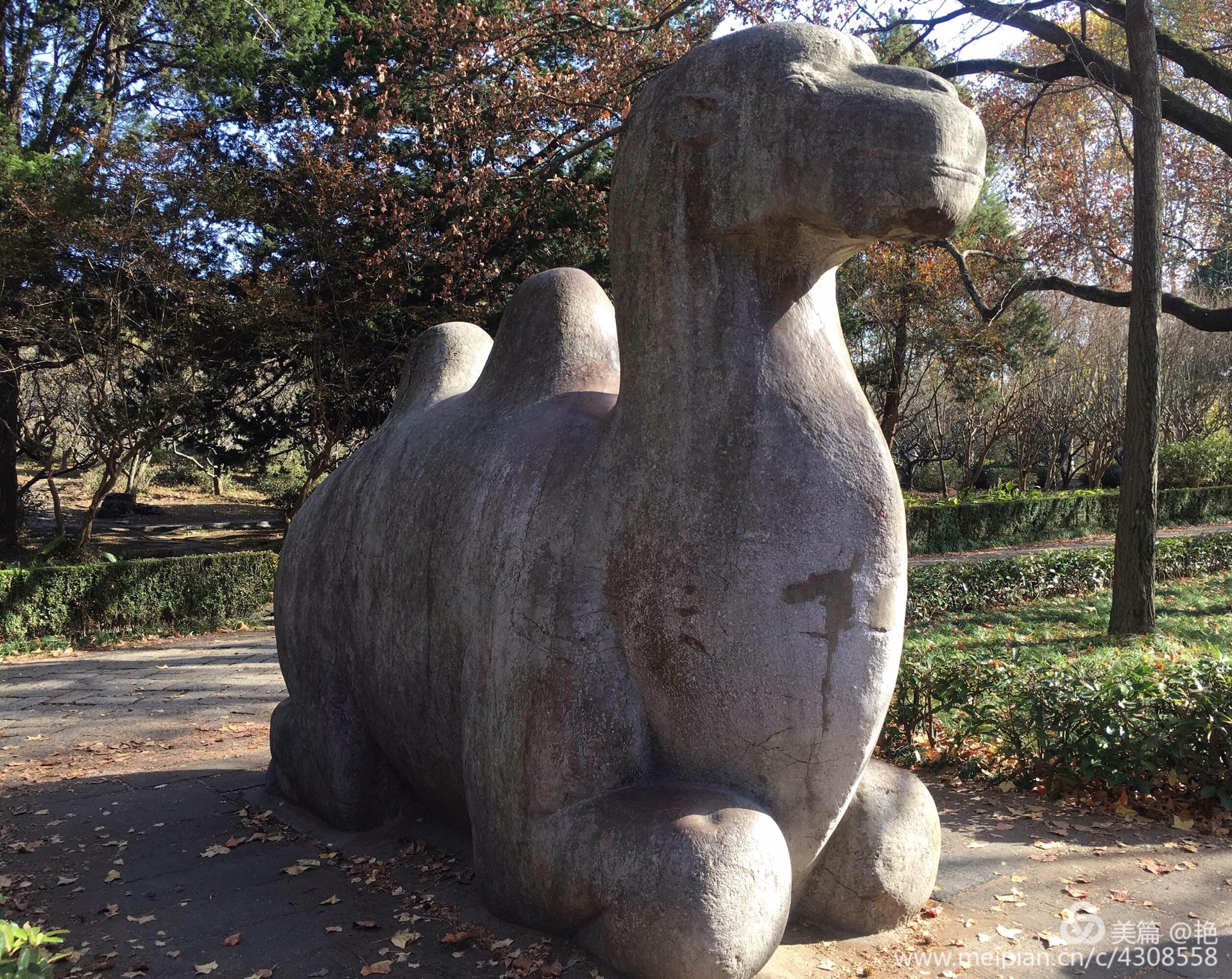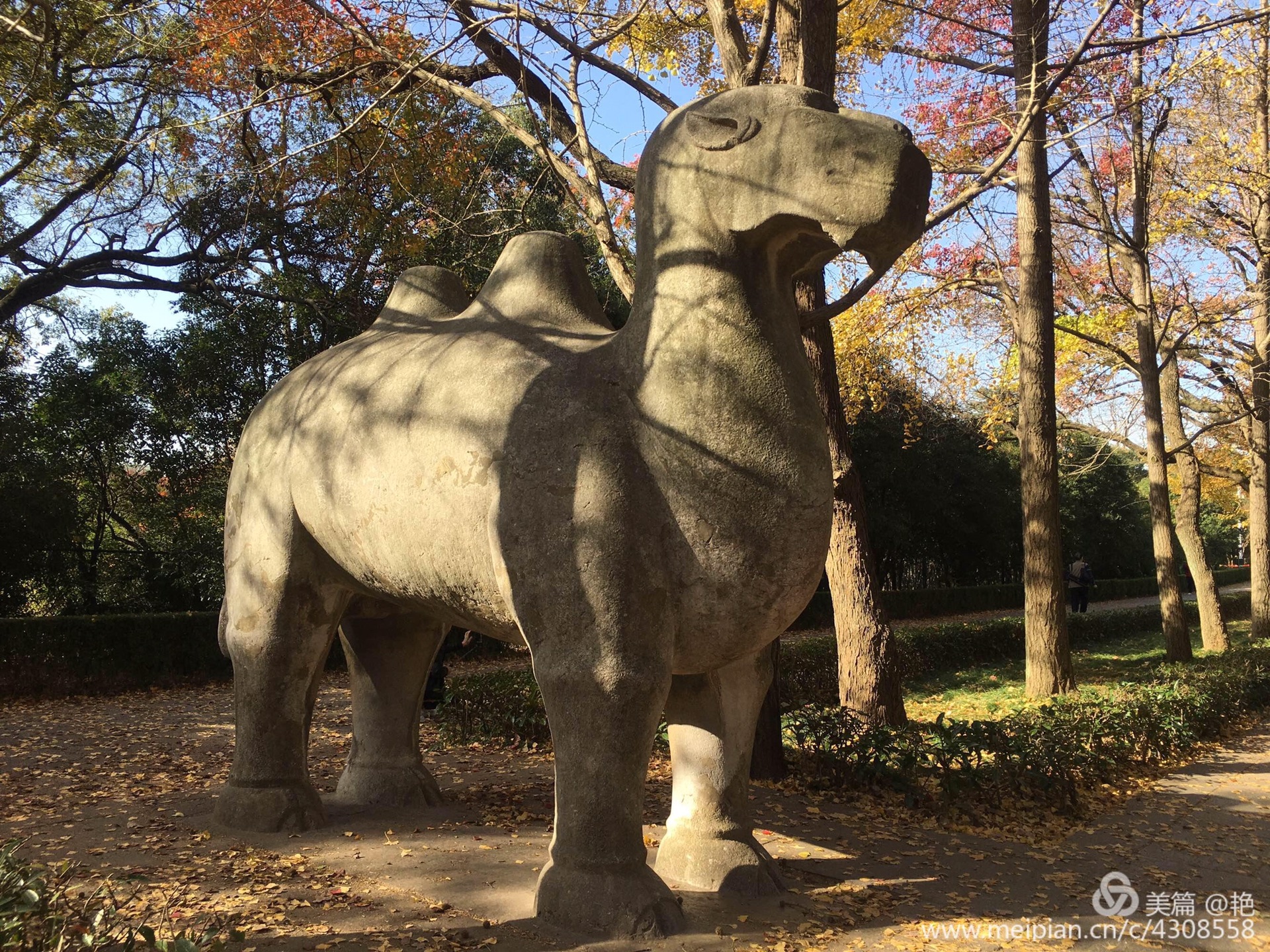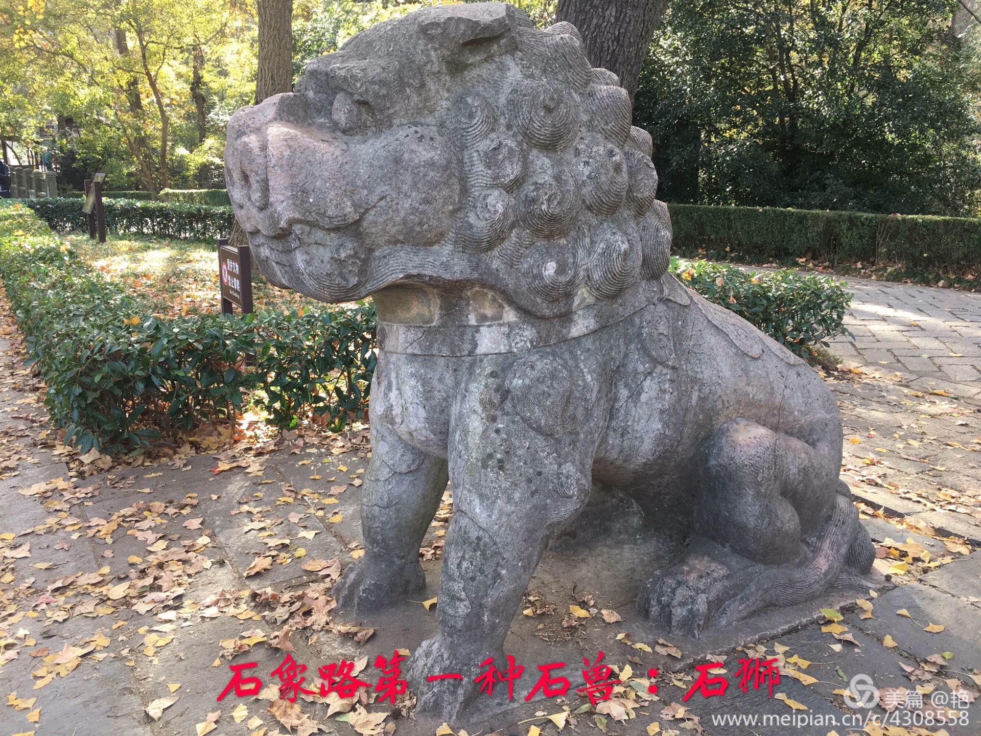 到南京的时间晚了些,石象路繁华落尽,没有过多的斑斓色彩,还好一路上还有这些憨态可掬又略显朴拙的石兽相伴,走在这条铺就在600年前的石路上,一边欣赏着秋日风光,一边深深感受着明朝王朝600年的历史沧桑,是一次不可多得的心灵之旅!