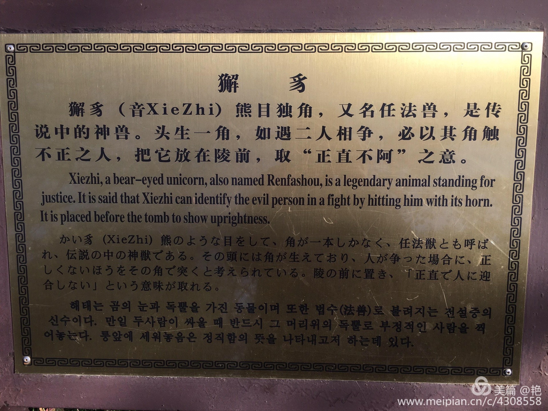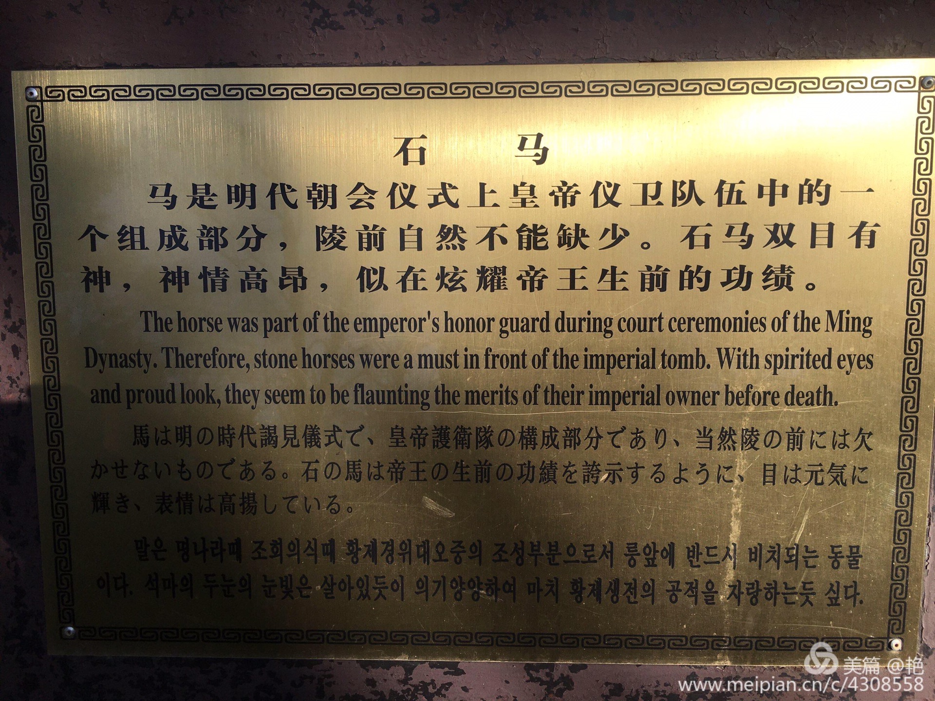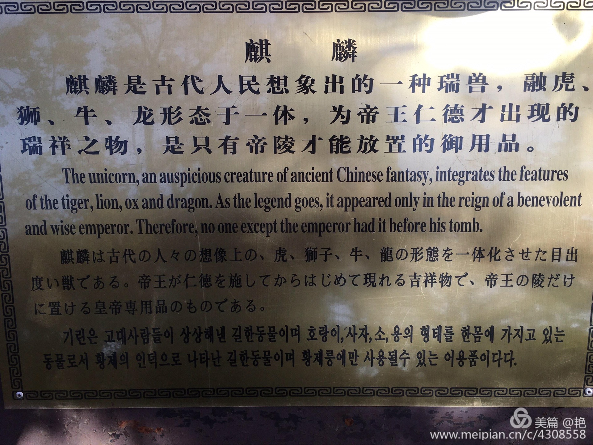 前人有诗:“石马嘶风翁仲立,犹疑子夜点朝班。”说到“翁仲”,历史上确有其人。他原是秦始皇时的一名大力士,名叫阮翁仲。相传他身高一丈三尺,英勇异常,因此秦始皇令他带兵驻守临洮,从而威震匈奴。翁仲死后,秦始皇便把他的形象塑成铜像,立在咸阳宫司马门外。据说匈奴人来咸阳朝贡,远远见到了铜像,还以为是真的阮翁仲不敢靠近。就这样,后来的统治者沿习秦始皇的做法,把立于宫阙庙堂和陵墓前的铜人或石人称为“翁仲”了。